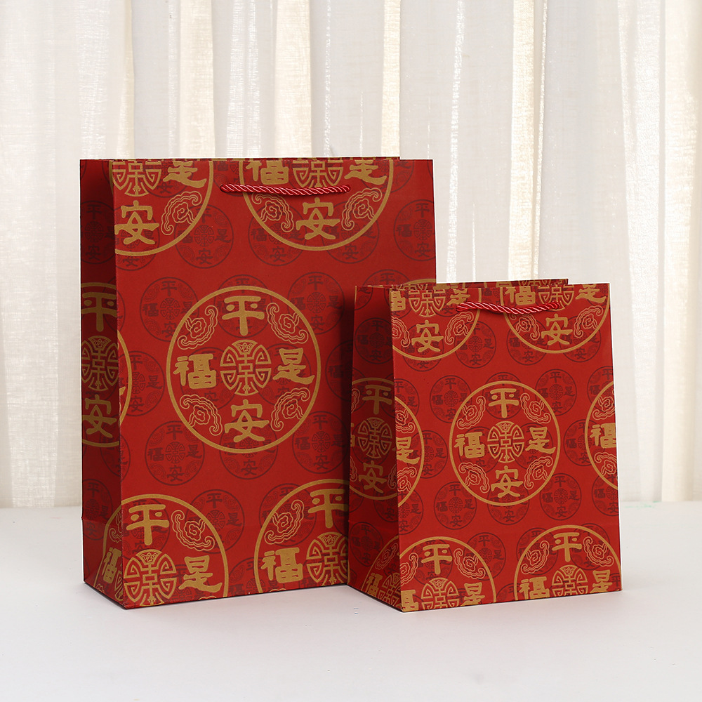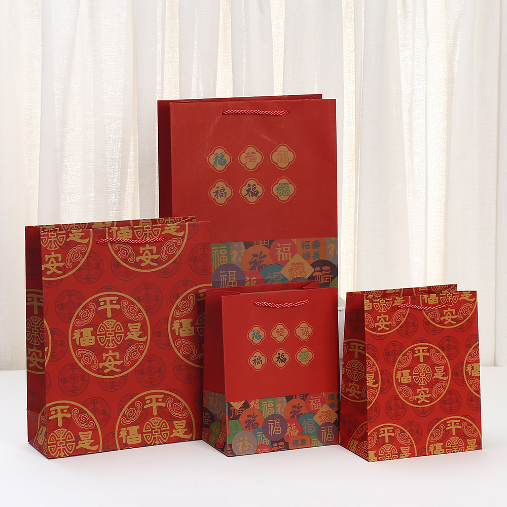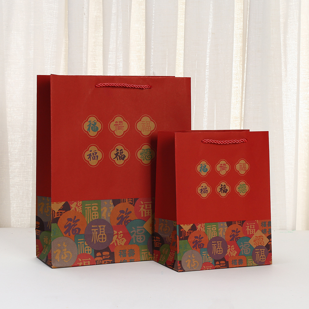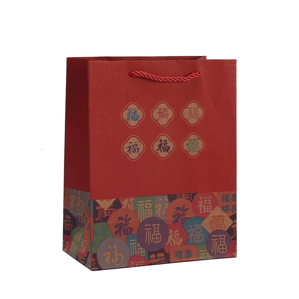 새해 축복 컬러 인쇄 선물 가방 봄 축제 상품 크래프트 종이 포장 가방 중국 축제 휴대용 쇼핑백 도매