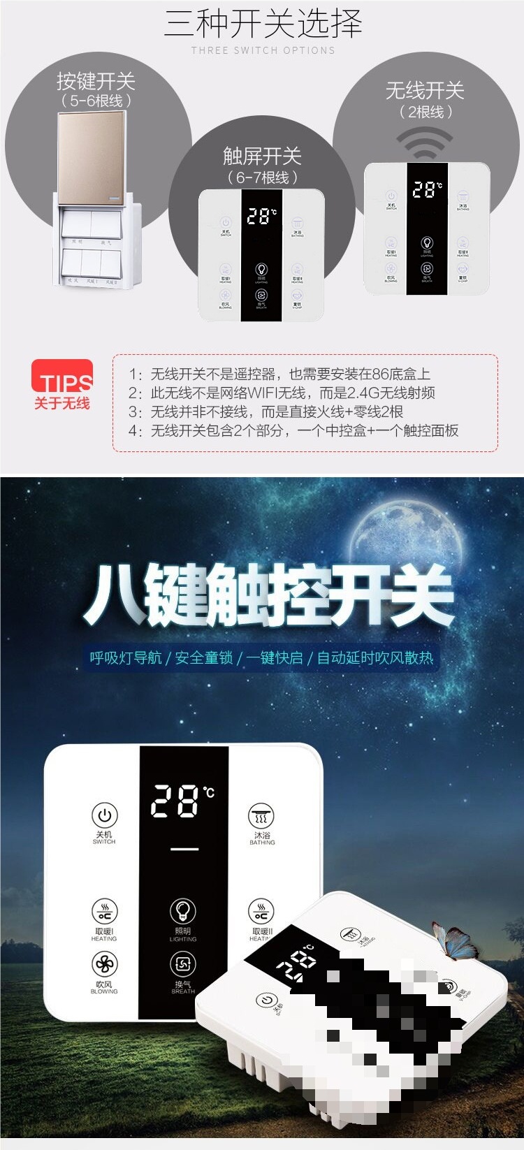 • Tuhao 골드 무선 스위치 + 긴 조명