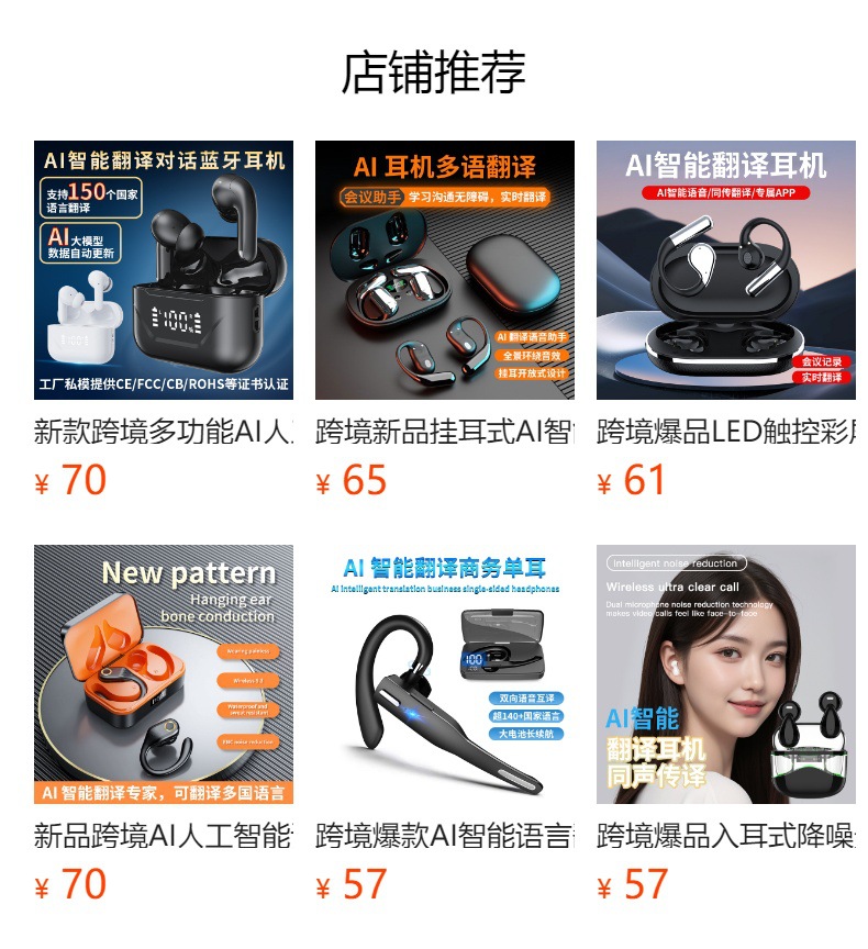 국경 간 폭발물 개인 모델 TWS 스포츠 땀 방지 소음 감소 디지털 디스플레이 긴 내구성 지능형 AI 번역 무선 블루투스 헤드셋스토어 가기