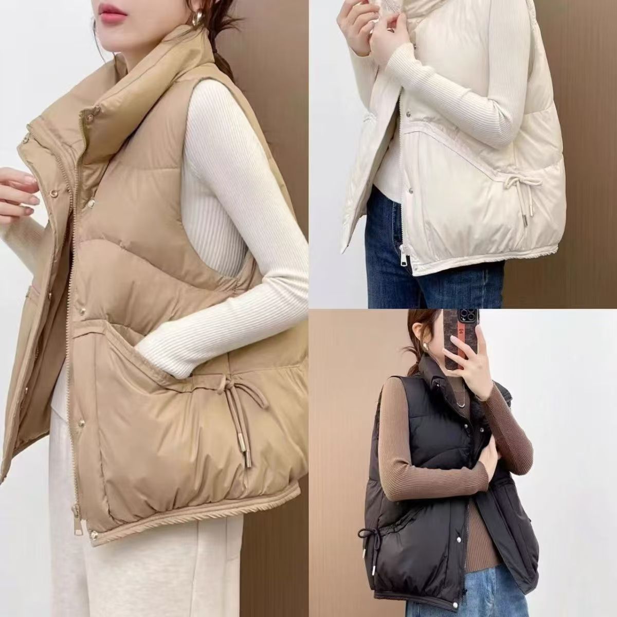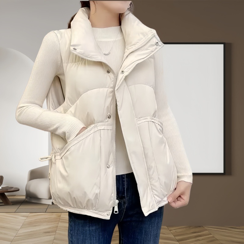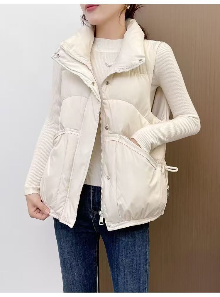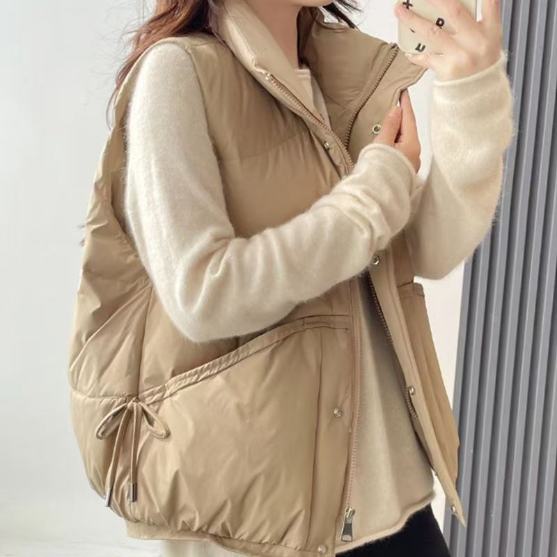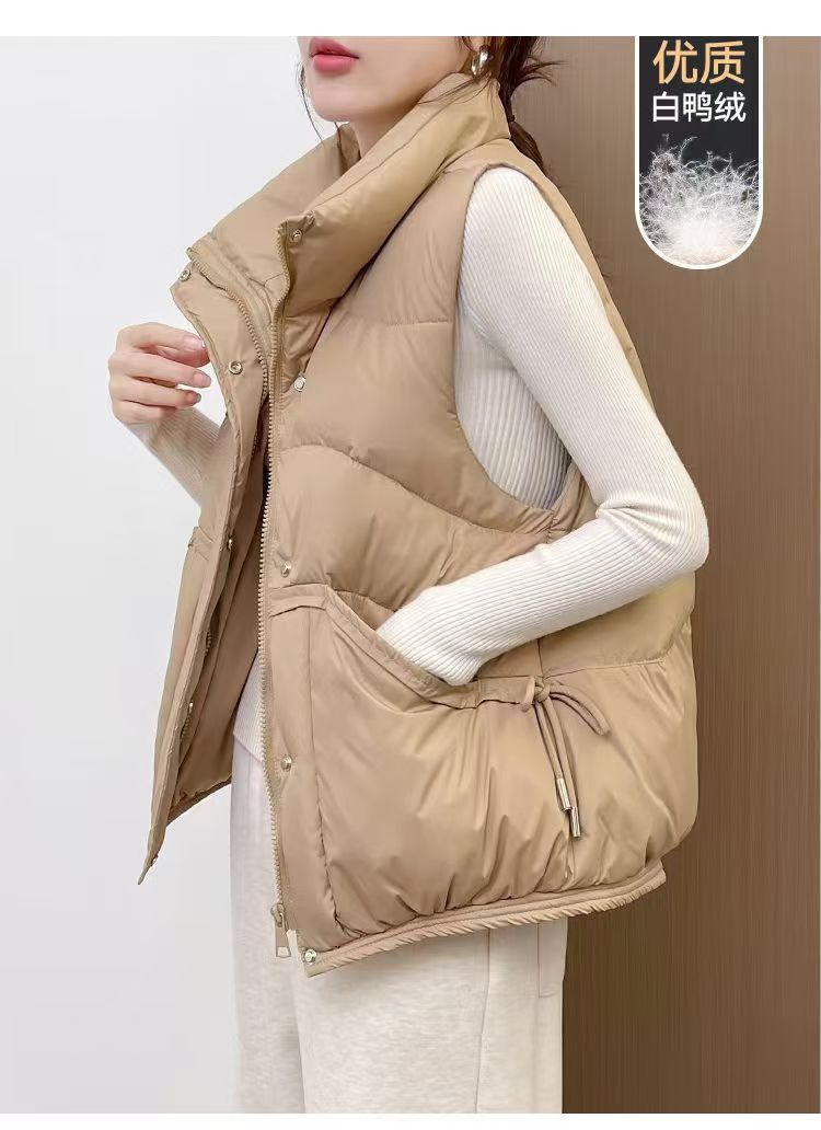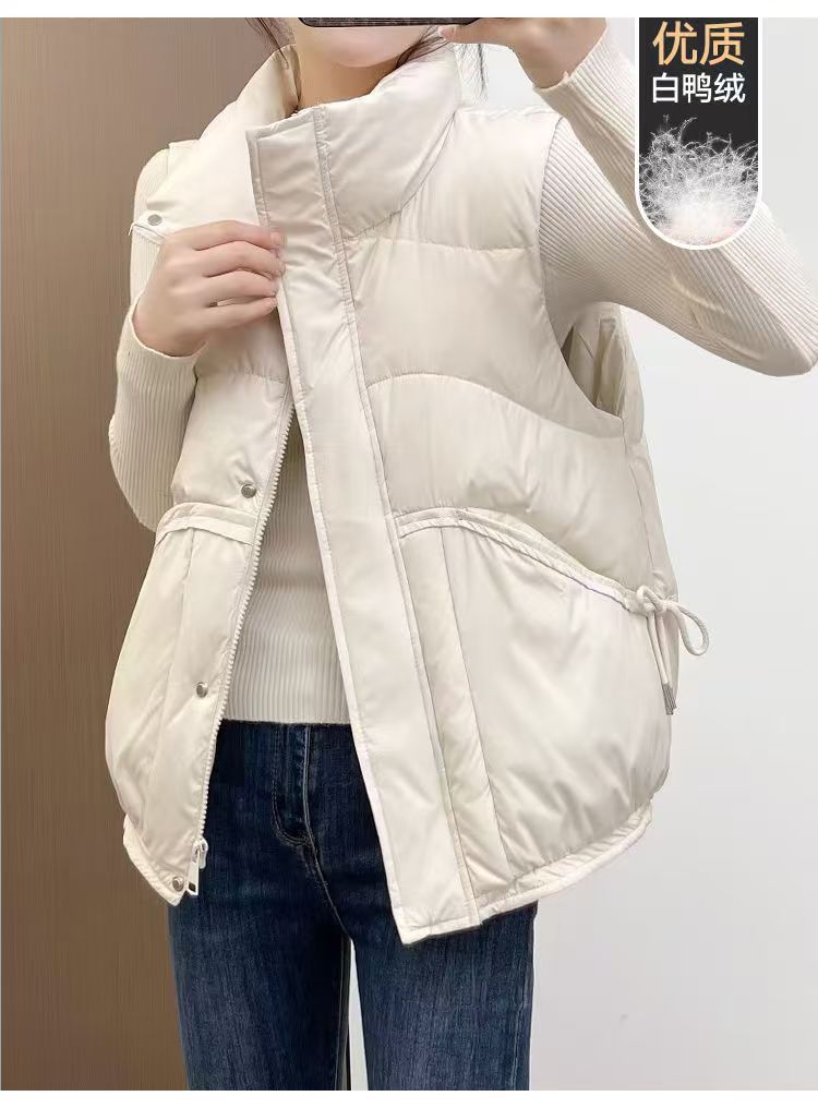 화이트 덕다운 조끼 여성용 가을 겨울 루즈핏 한국 스타일 조끼 얇은 다운 재킷 외투 여성용스토어 가기