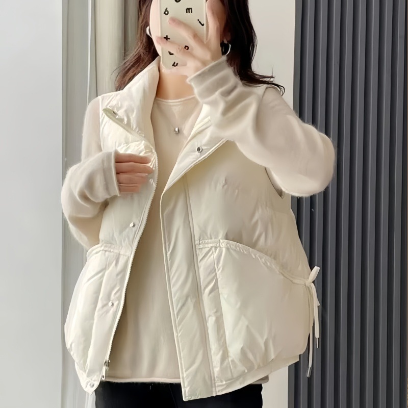화이트 덕다운 조끼 여성용 가을 겨울 루즈핏 한국 스타일 조끼 얇은 다운 재킷 외투 여성용