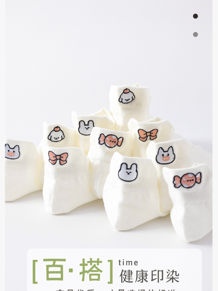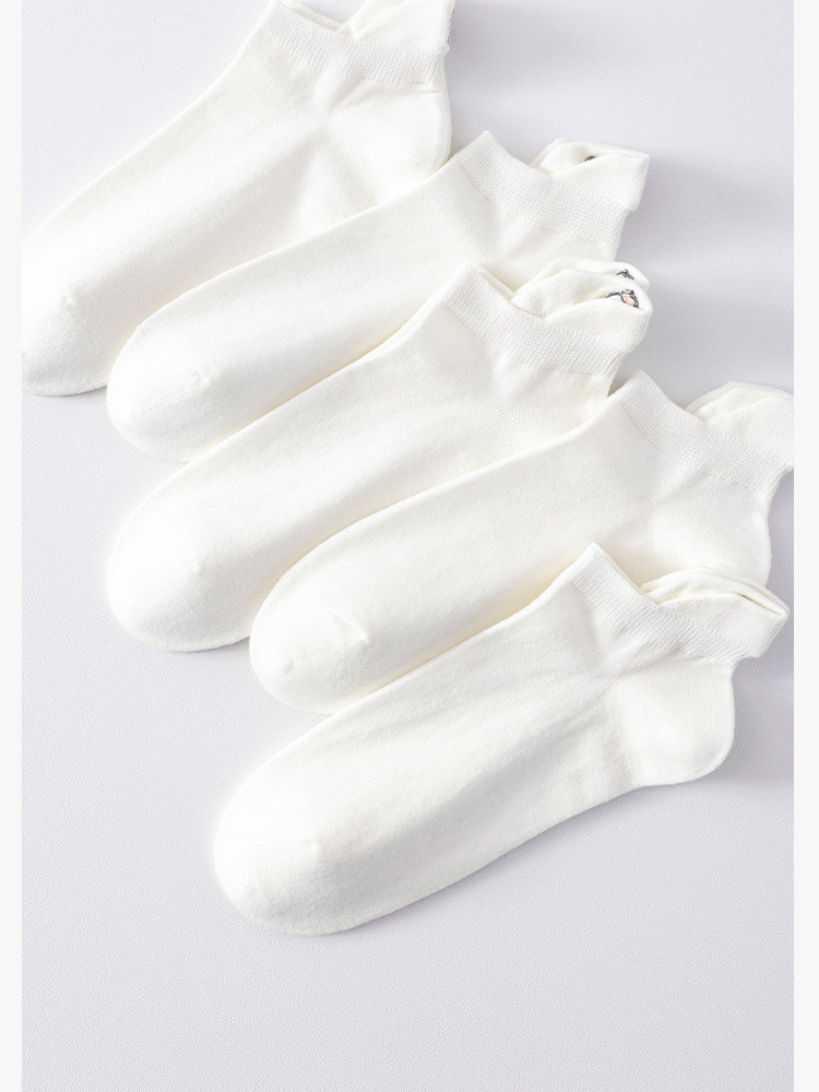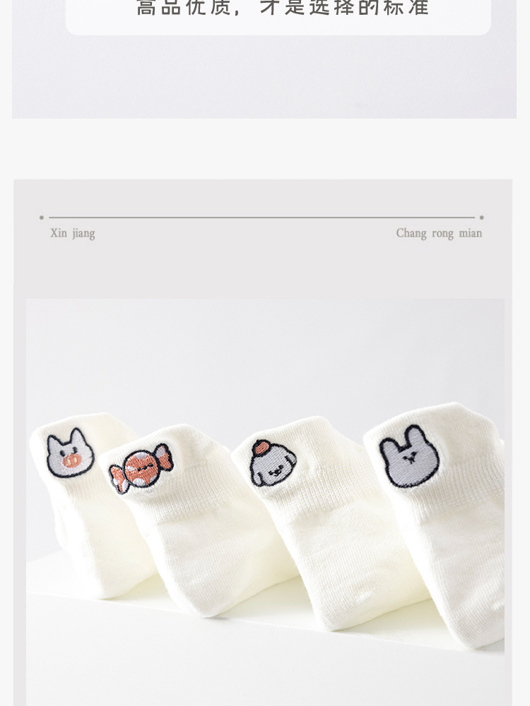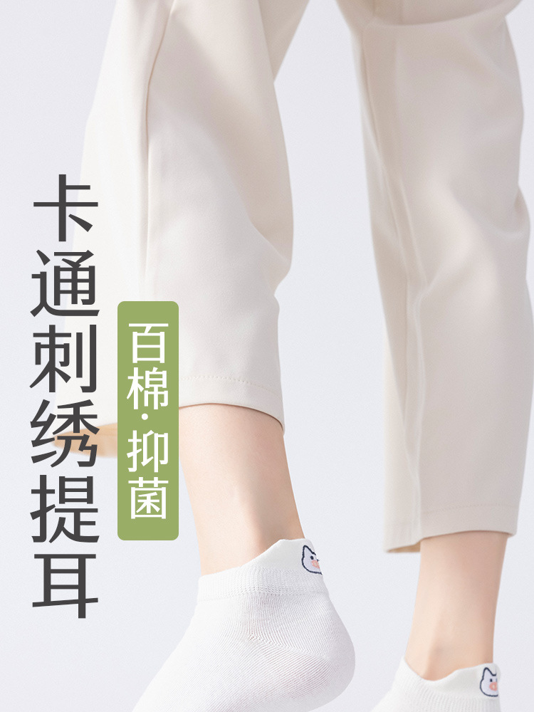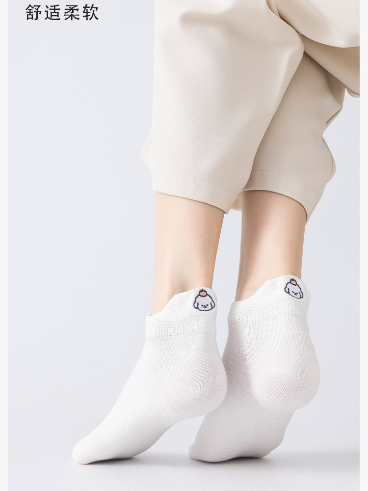 화이트 코튼 양말 여성용 짧은 양말 탈취제 땀 흡수 만화 자수 귀여운 짧은 흰색 양말 봄과 여름 양말스토어 가기