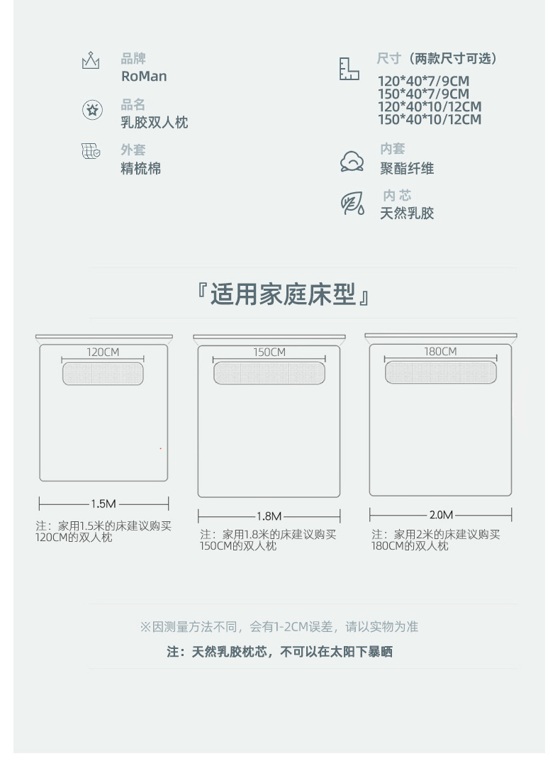 라텍스 베개 태국 라텍스 더블 긴 베개 고무 긴 커플 베개 1 1.8 침대 1.5 m 1.2m