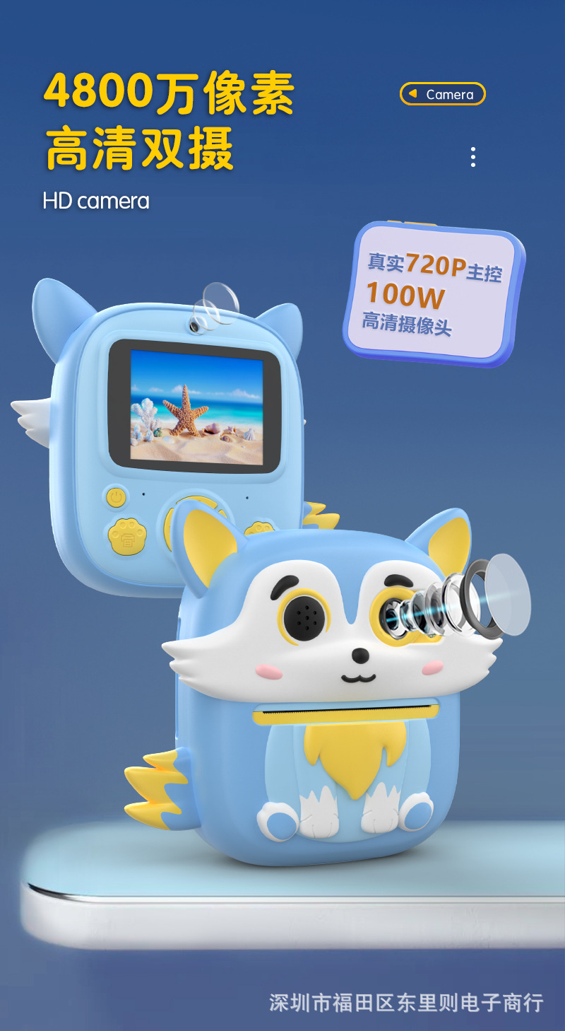 국경을 넘는 새로운 어린이 카메라 해파리 클래퍼 여우 HD 열 흑백 낙서 인쇄 가능한 카메라스토어 가기