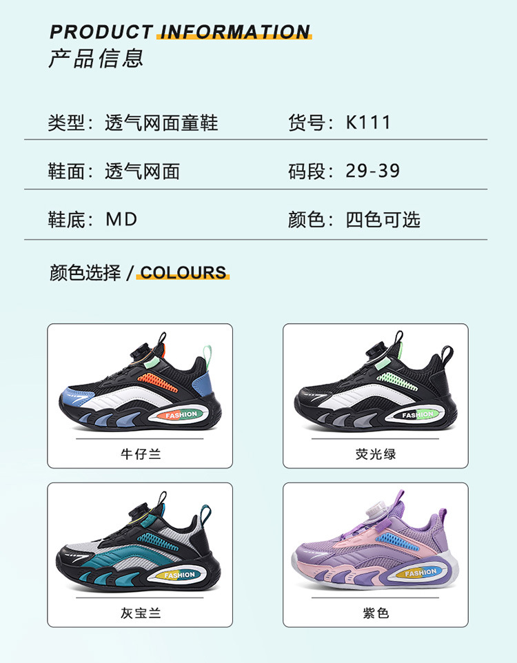K111 봄과 여름 낮은 메쉬 통기성 남성 신발 어린이 회전 버클 런닝 신발 남성 및 여성 어린이 신발 운동화 러닝화
