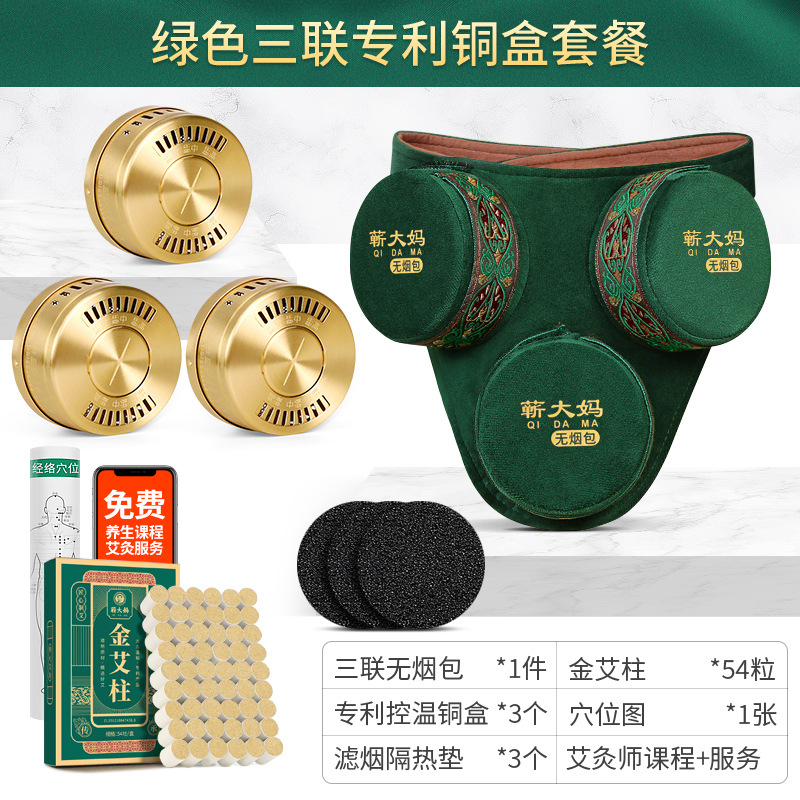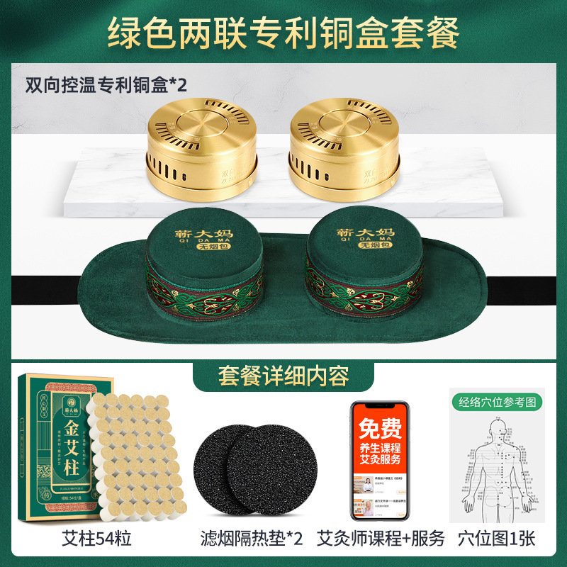 • 녹색 중공 단일 커플 + [구리 상자 1개] + 뜸 10개 + 선물 가방