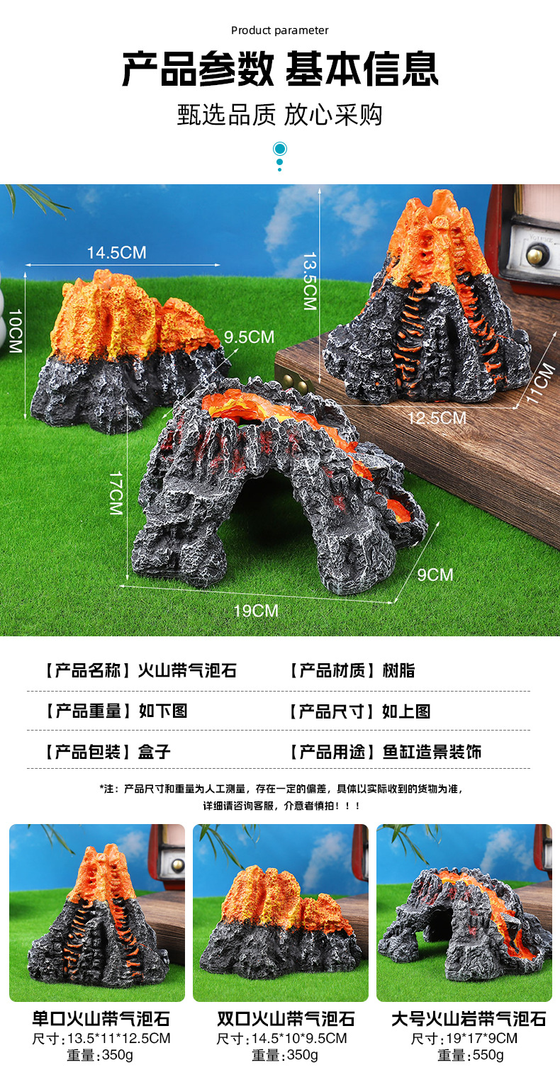 창조적 인 화산 폭발 물고기 탱크 조경 장식품 수족관 장식 시뮬레이션 화산 수지 공예 거품 돌