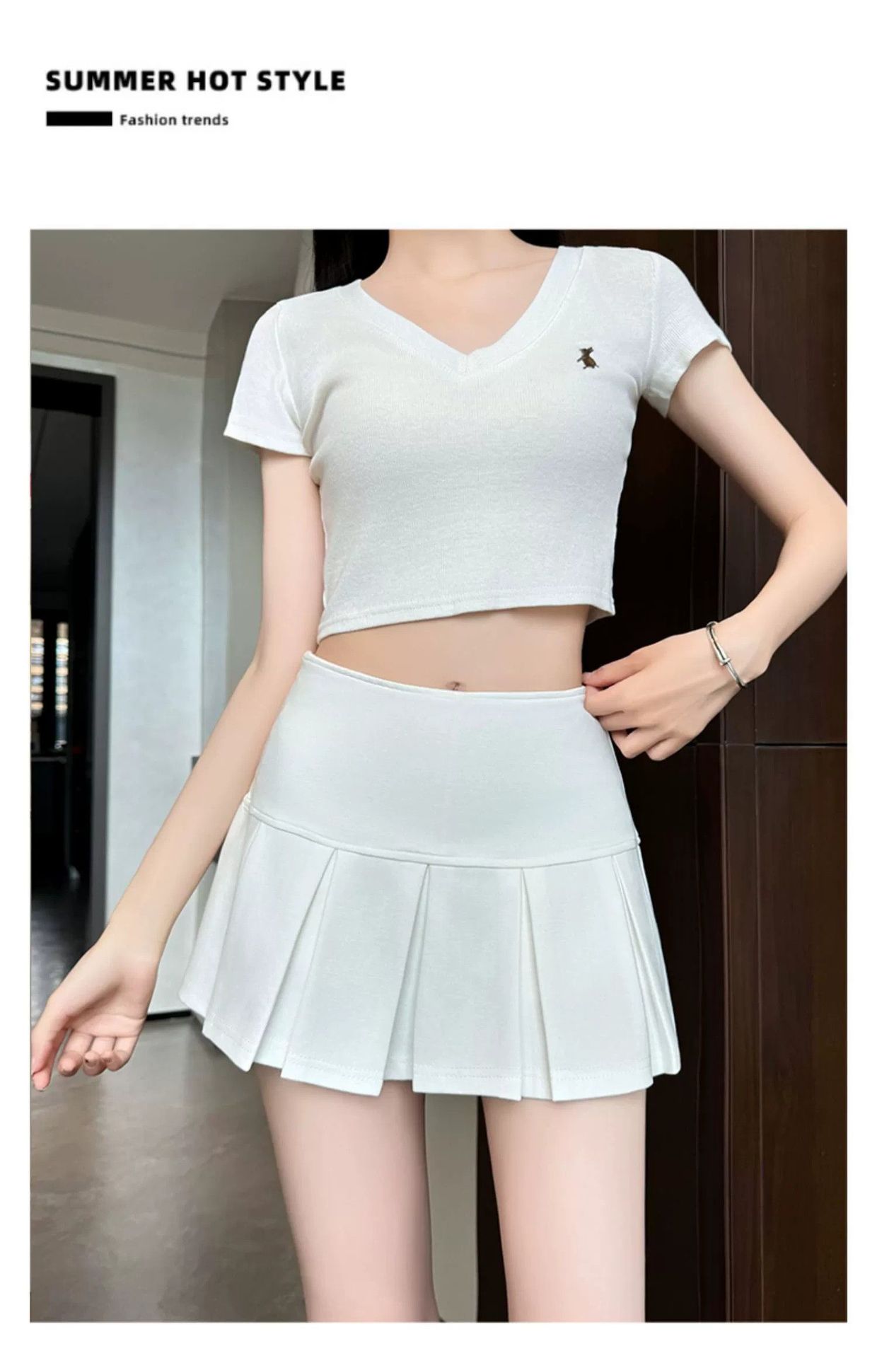 회색 주름 치마 여자 여름 2024 새로운 높은 허리 슬리밍 눈부심 방지 A 라인 3 점 스포츠 미니 스커트