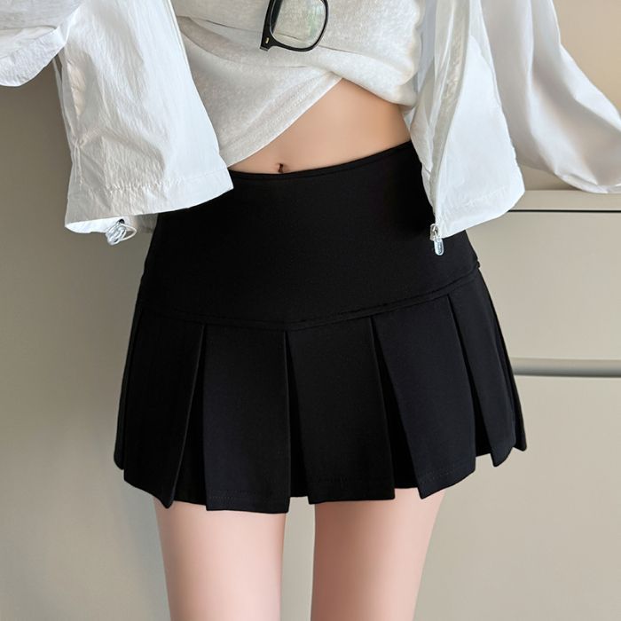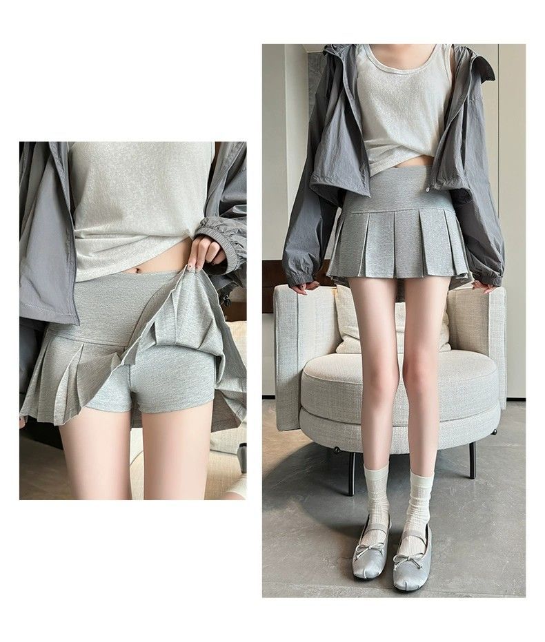 회색 주름 치마 여자 여름 2024 새로운 높은 허리 슬리밍 눈부심 방지 A 라인 3 점 스포츠 미니 스커트스토어 가기