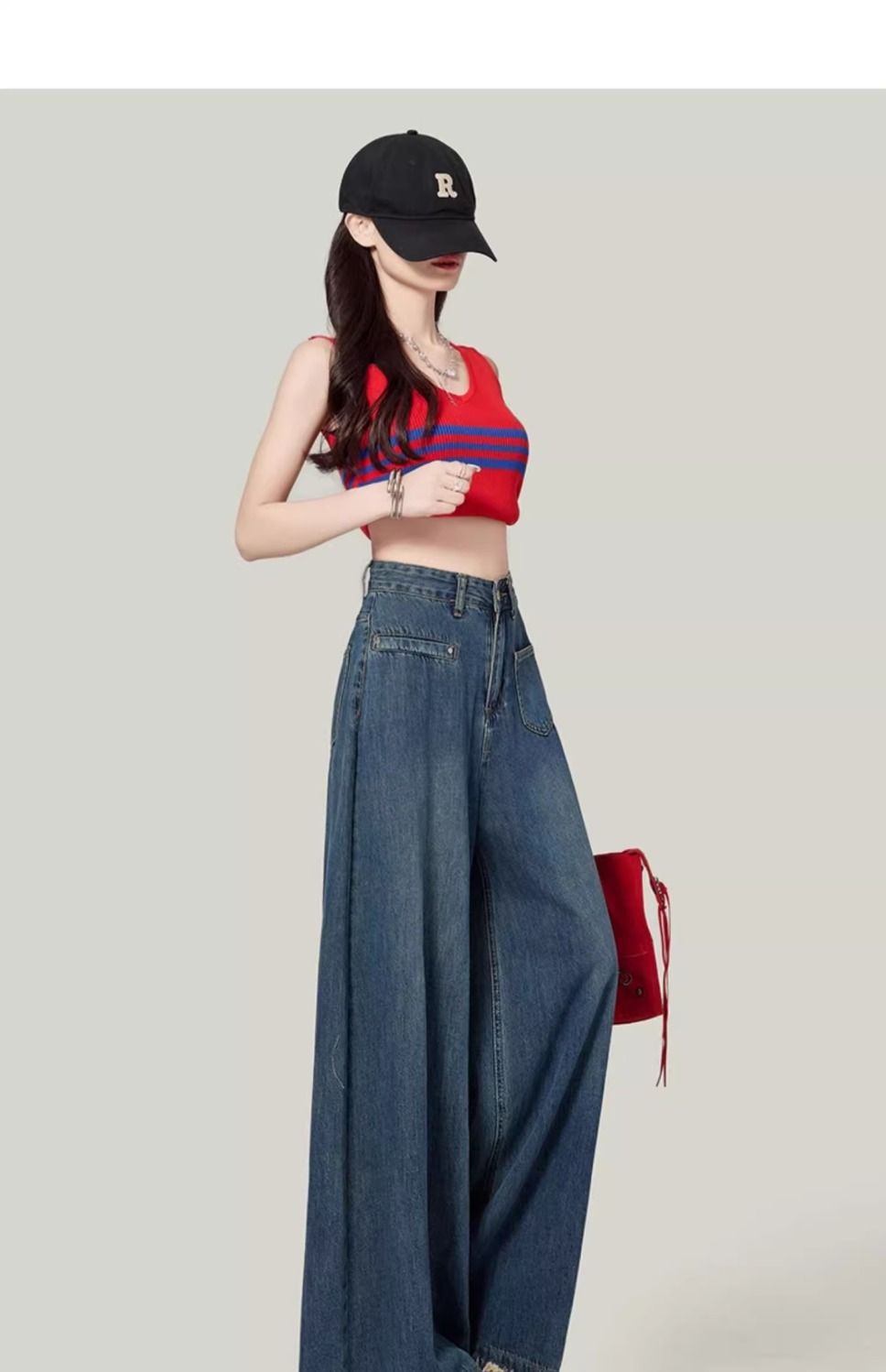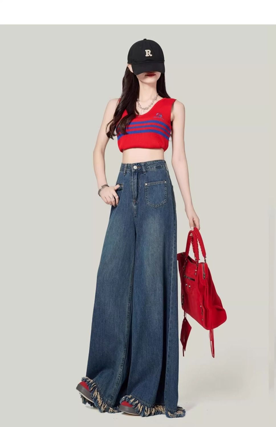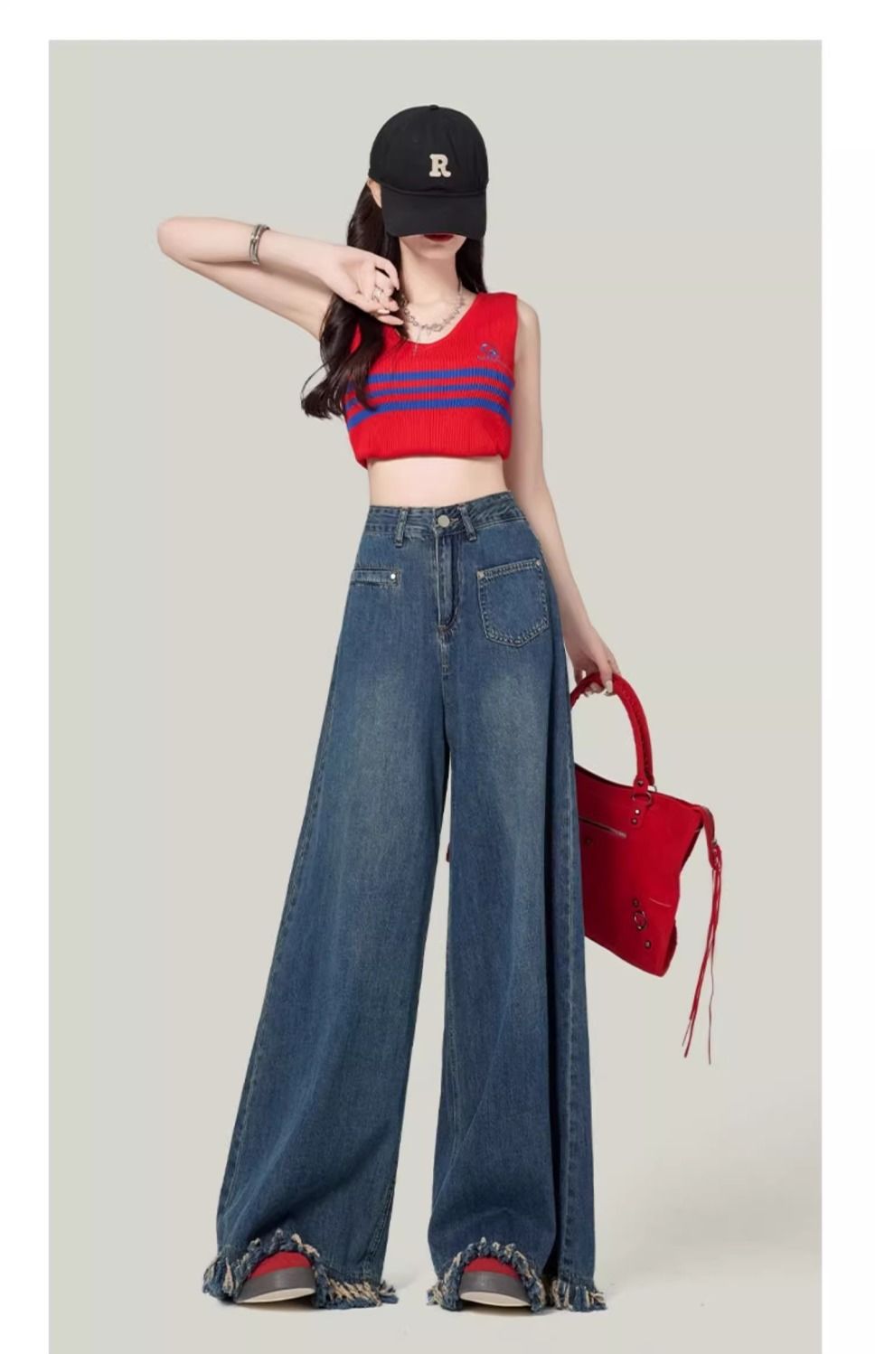 높은 허리 느슨한 모피 가장자리 2025 봄 가을 한국 스타일 우아한 서양식 모든 경기 복고풍 넓은 다리 바지 청바지스토어 가기