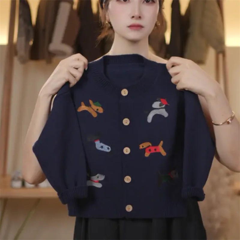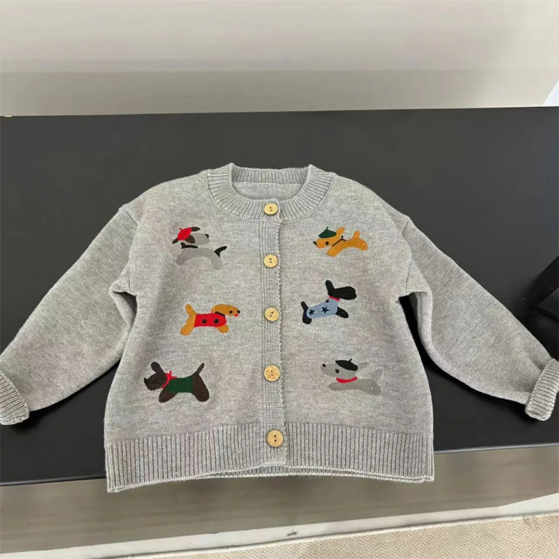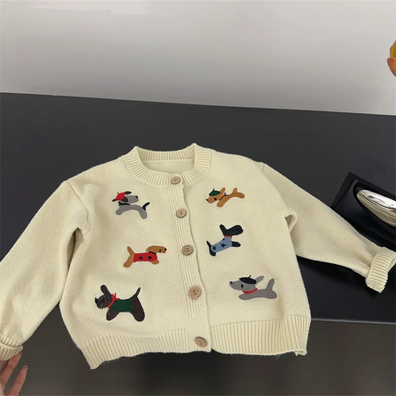 한국 아동복 어린이 둥근 목 스웨터 귀여운 만화 개 스웨터 네이비 스웨터 아기 니트 코트스토어 가기