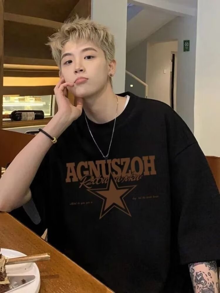 새로운 반팔 티셔츠 남성용 여름 한국식 트렌디 심플 반팔 탑 홍콩 스타일 루즈 캐주얼 트렌디 브랜드 티셔츠스토어 가기
