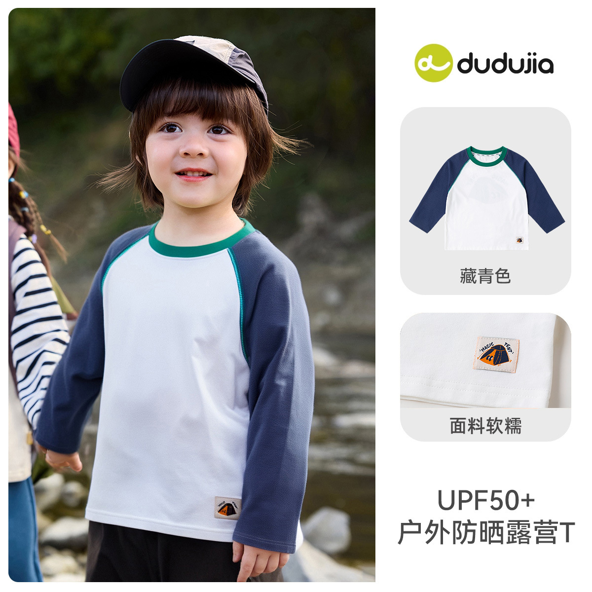 [UPF50+] Dudu 아기 긴팔 티셔츠 가을 어린이 자외선 차단 탑 가을 옷 소년 캠핑 T 아동복스토어 가기