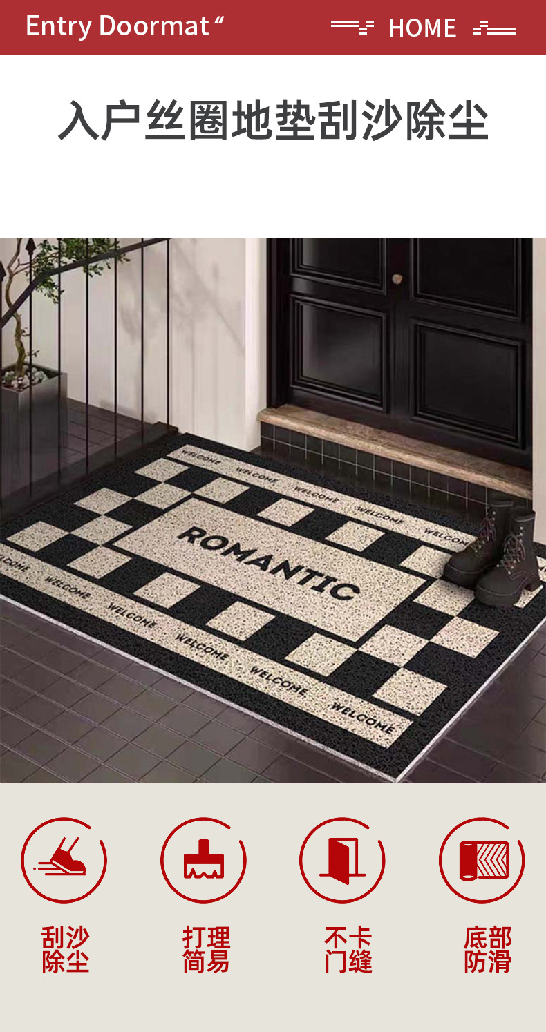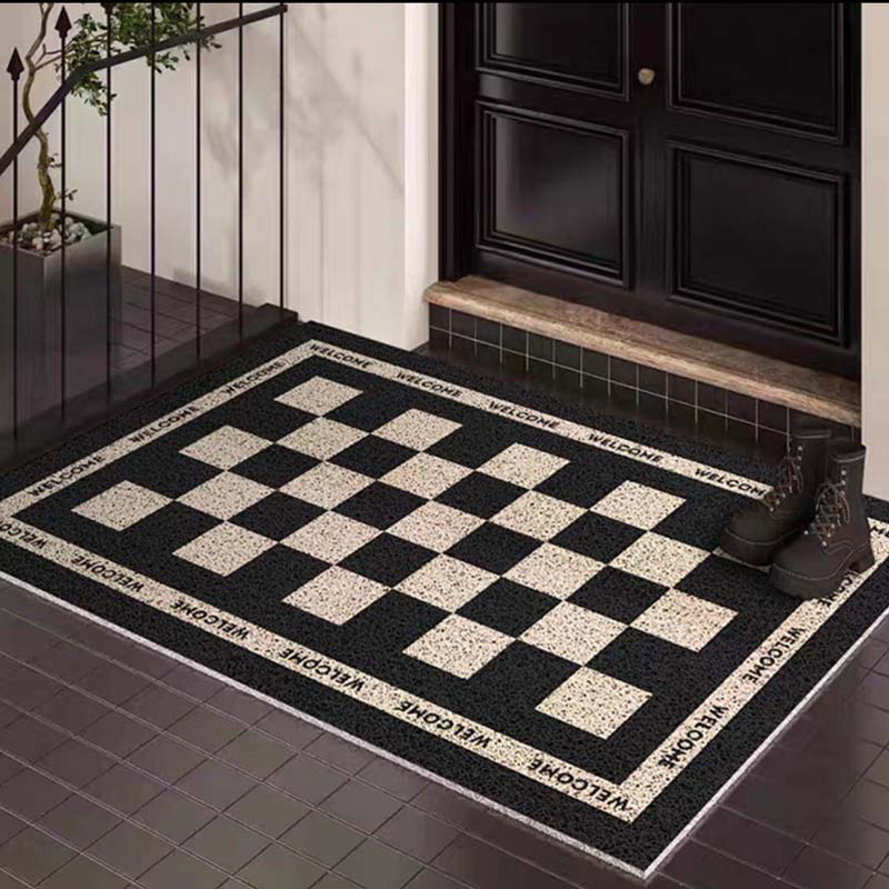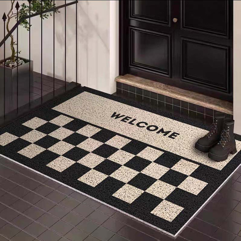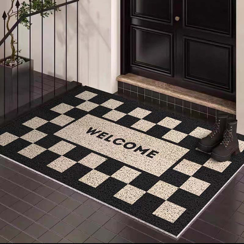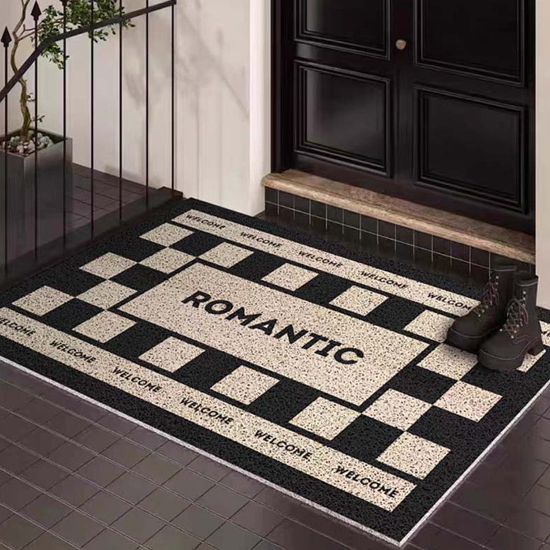 국경 간 흑백 그리드 와이어 링 카펫 입구 진흙 긁는 토양 발 매트 입구 내마모성 먼지 방지 관리가 쉬운 바닥 매트