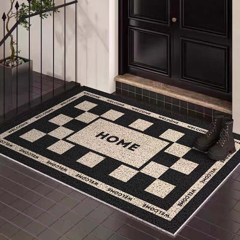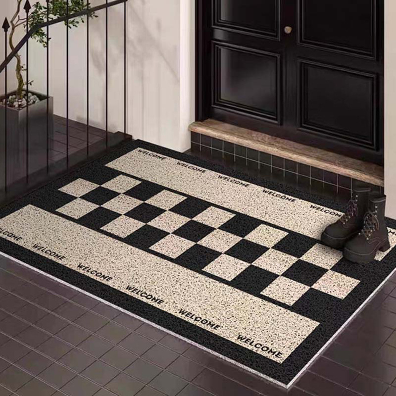 국경 간 흑백 그리드 와이어 링 카펫 입구 진흙 긁는 토양 발 매트 입구 내마모성 먼지 방지 관리가 쉬운 바닥 매트스토어 가기