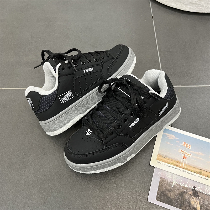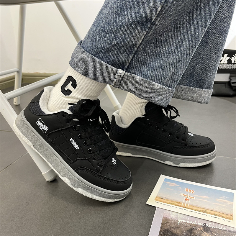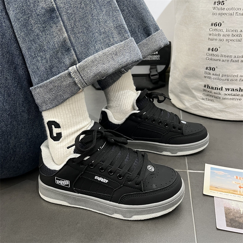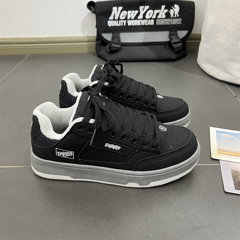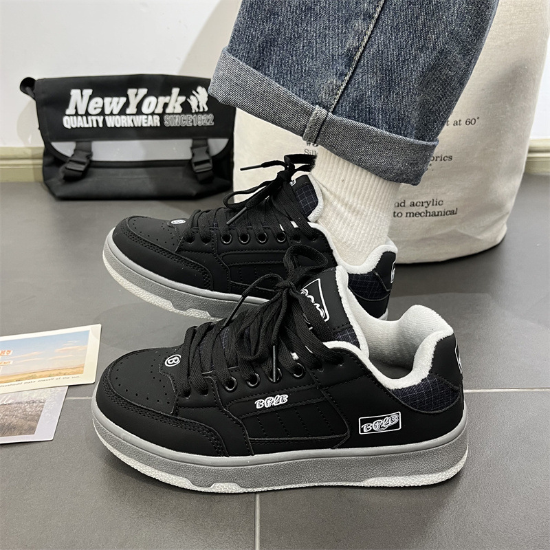 남자 신발 운동화 2024 겨울 새 기모 따뜻한 신발 Ins 청소년 트렌드 올 매치 스케이트 보드 빵 신발스토어 가기