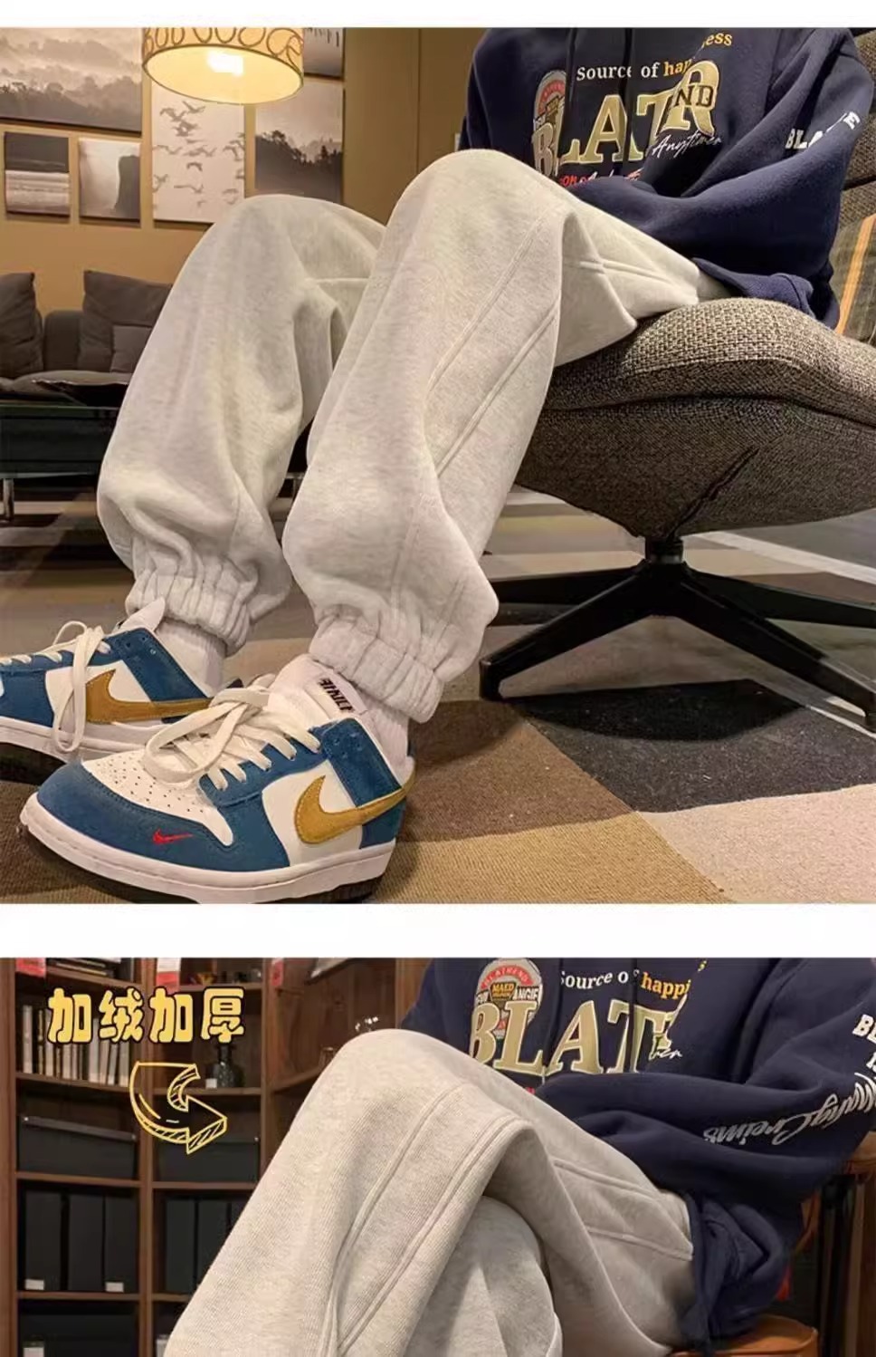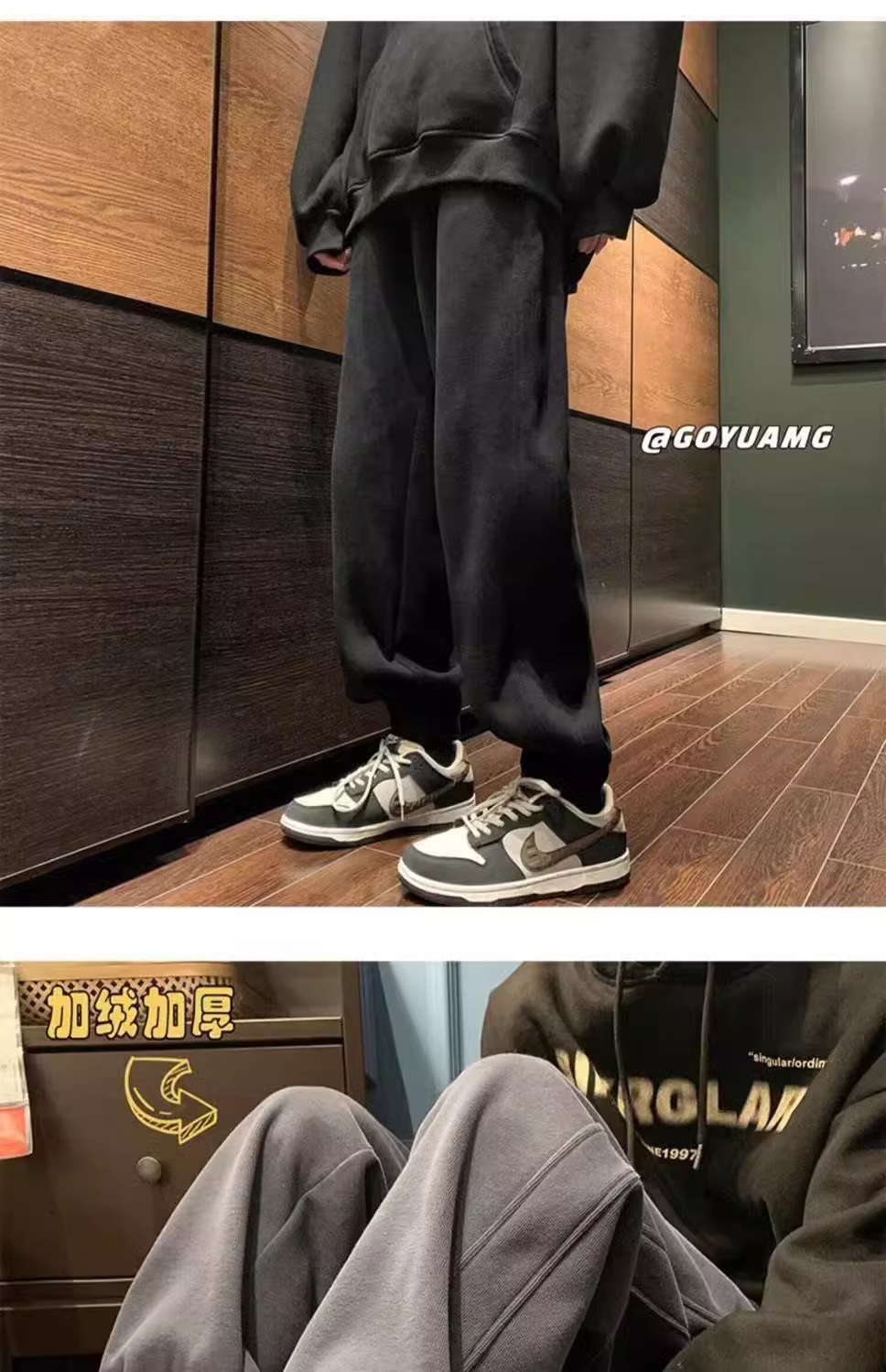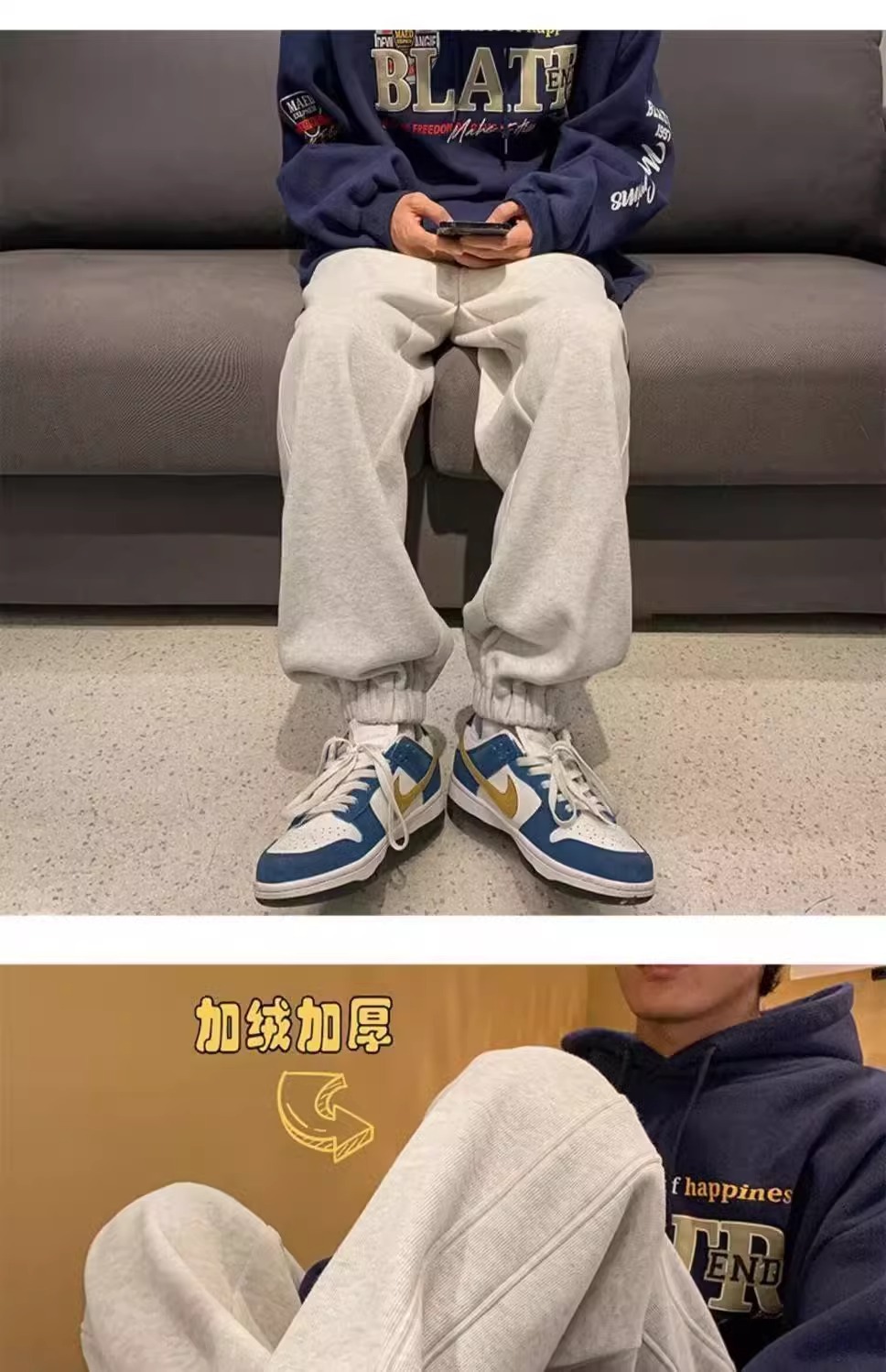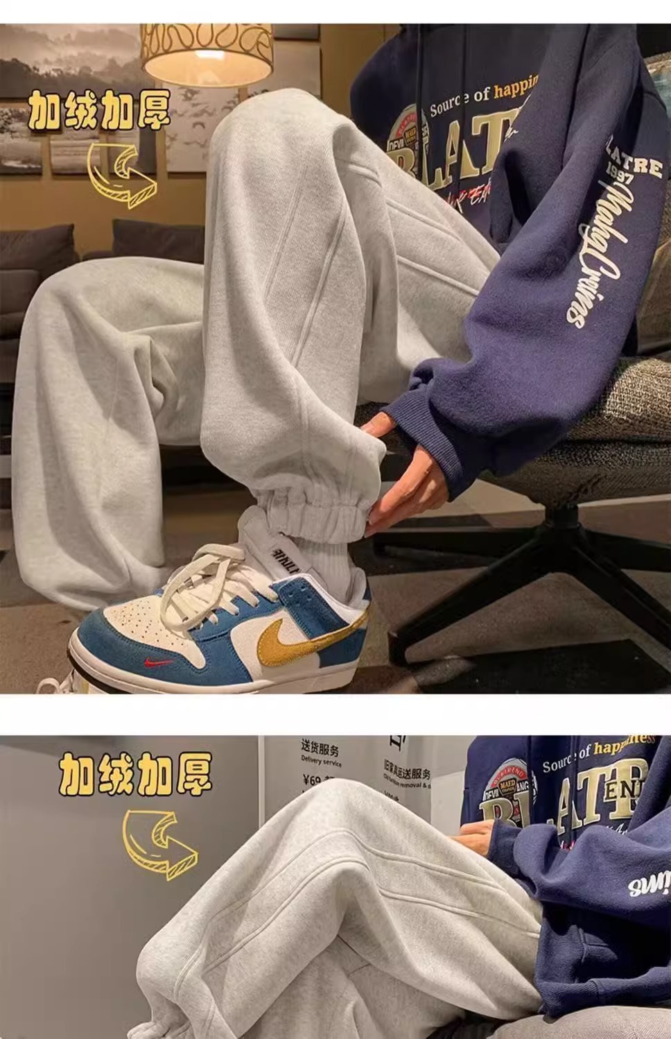 오버 사이즈 아메리칸 스타일 캐주얼 바지 남자 기모 두꺼운 느슨한 가을과 겨울 패션 브랜드 그레이 헤비 스포츠 바지스토어 가기