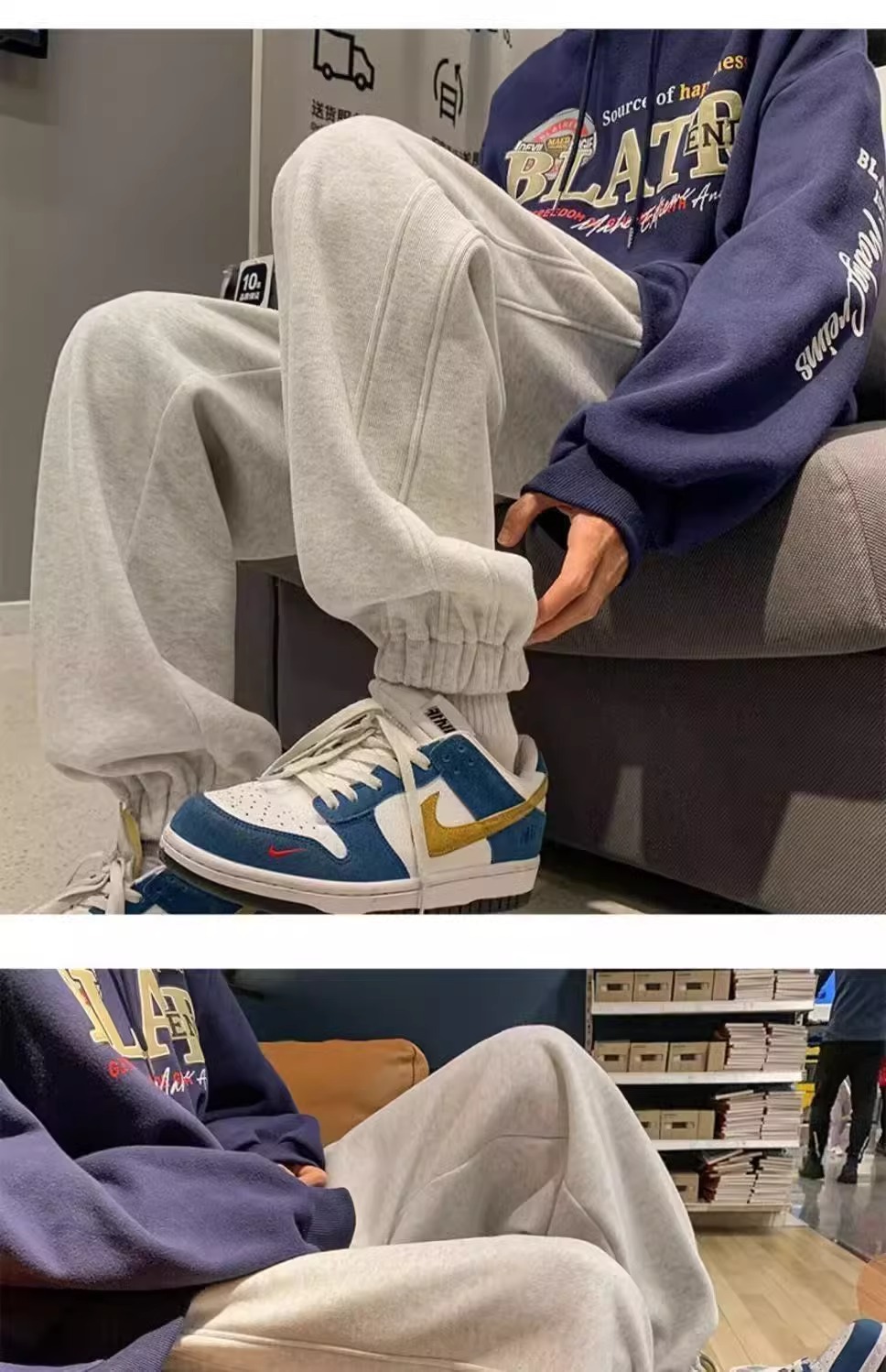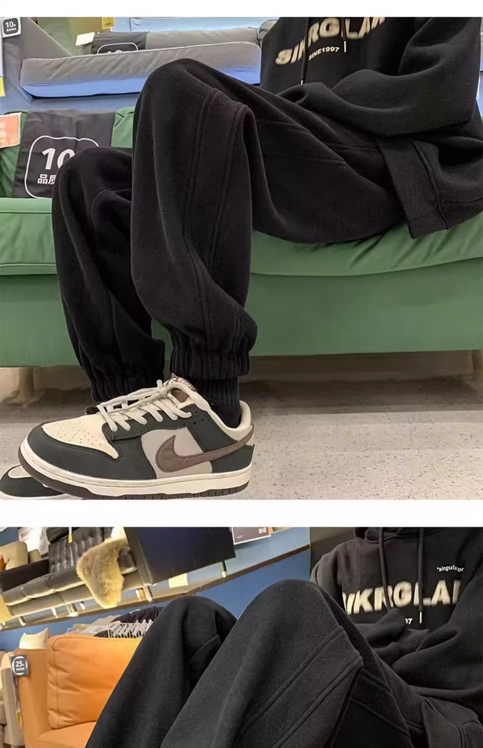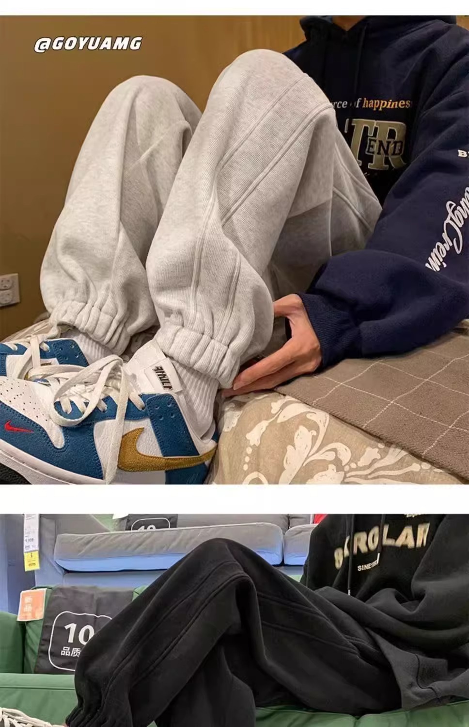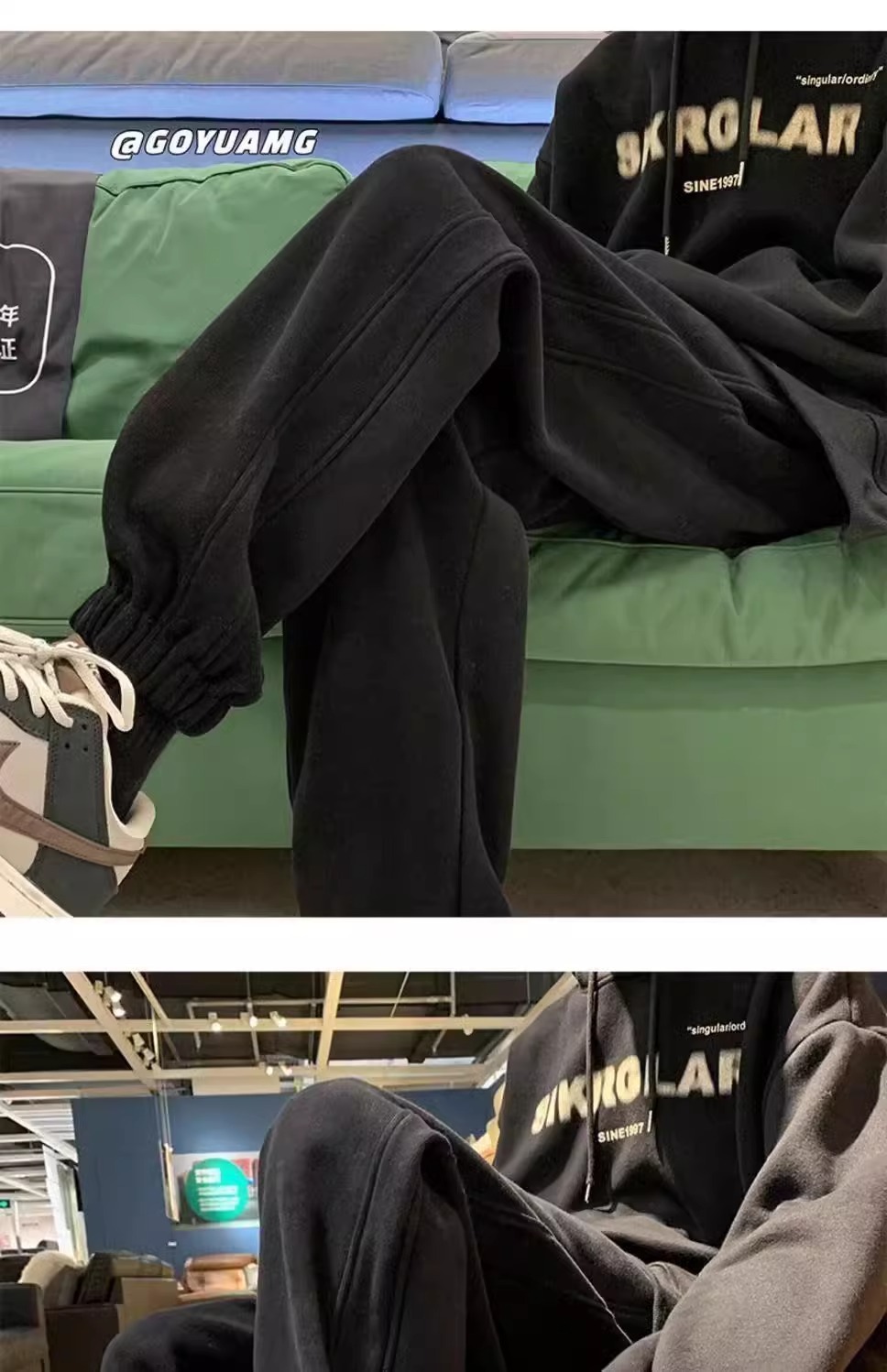 오버 사이즈 아메리칸 스타일 캐주얼 바지 남자 기모 두꺼운 느슨한 가을과 겨울 패션 브랜드 그레이 헤비 스포츠 바지스토어 가기