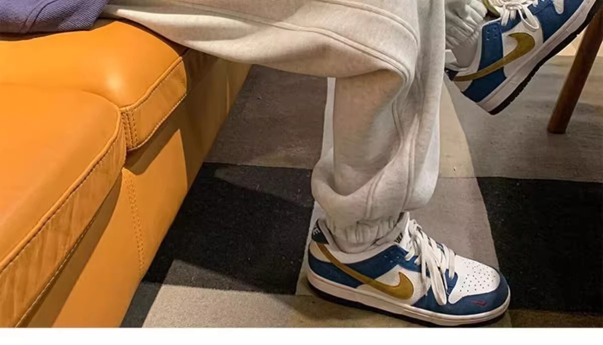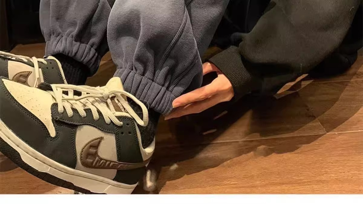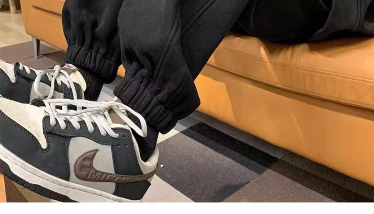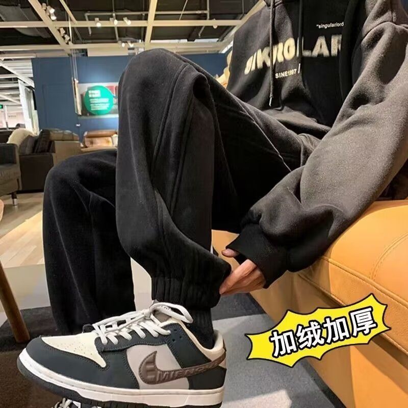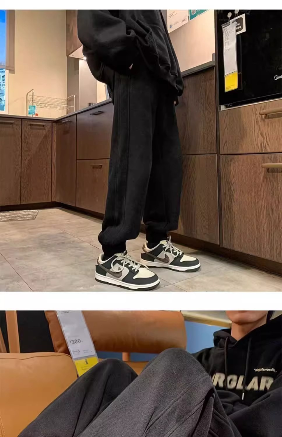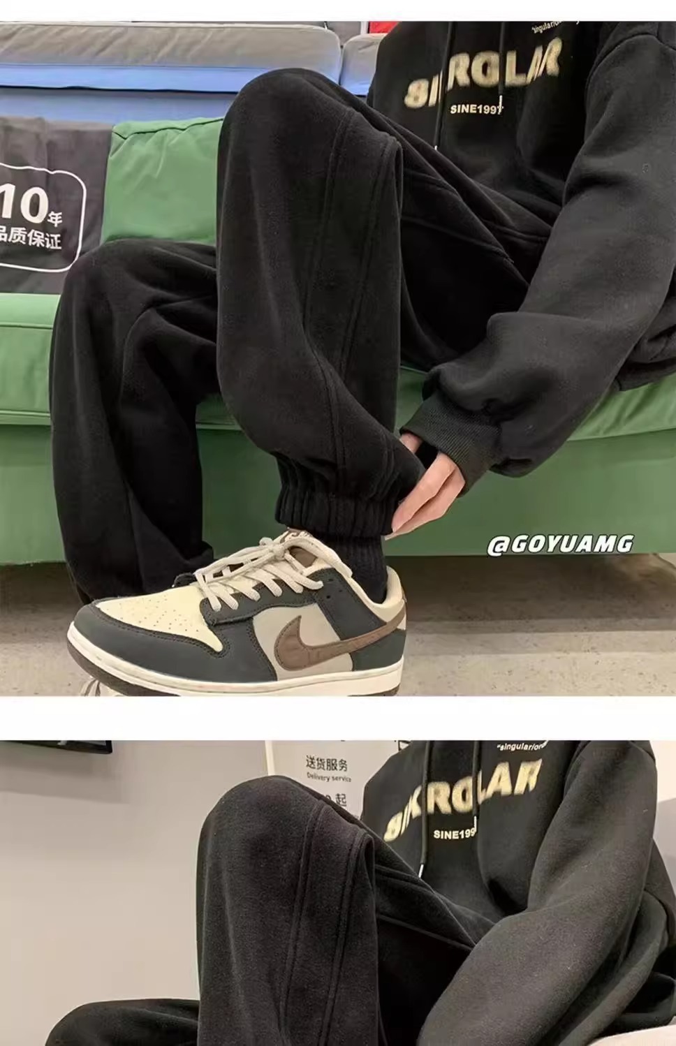 오버 사이즈 아메리칸 스타일 캐주얼 바지 남자 기모 두꺼운 느슨한 가을과 겨울 패션 브랜드 그레이 헤비 스포츠 바지스토어 가기