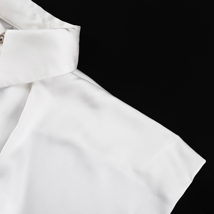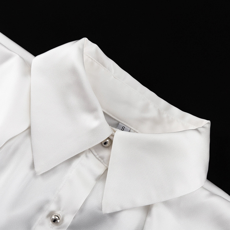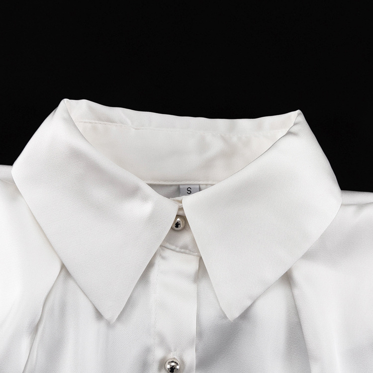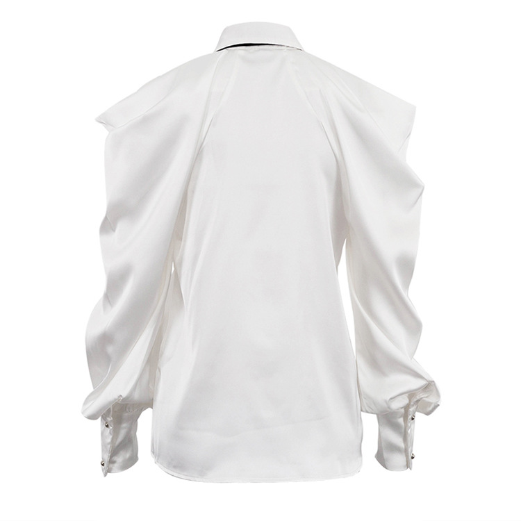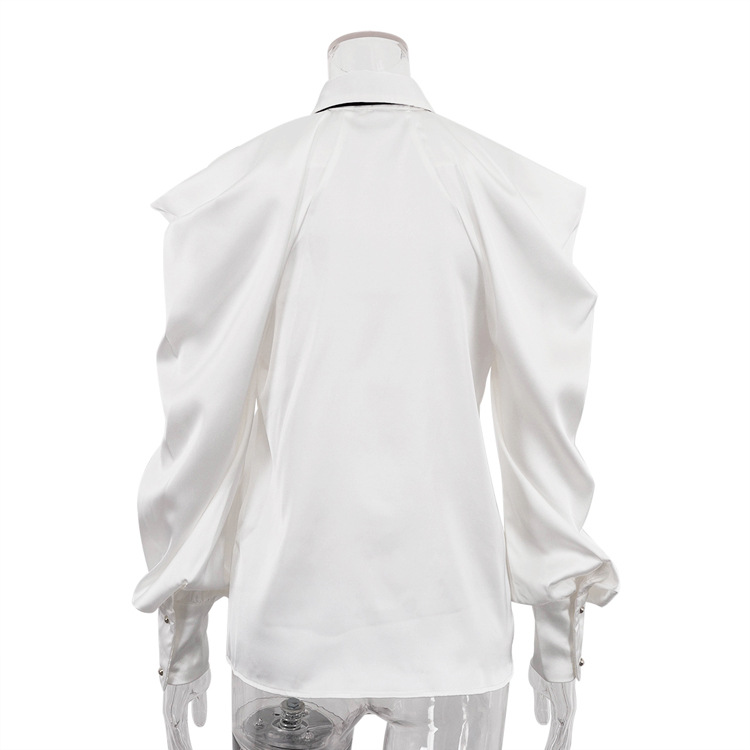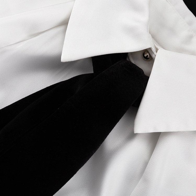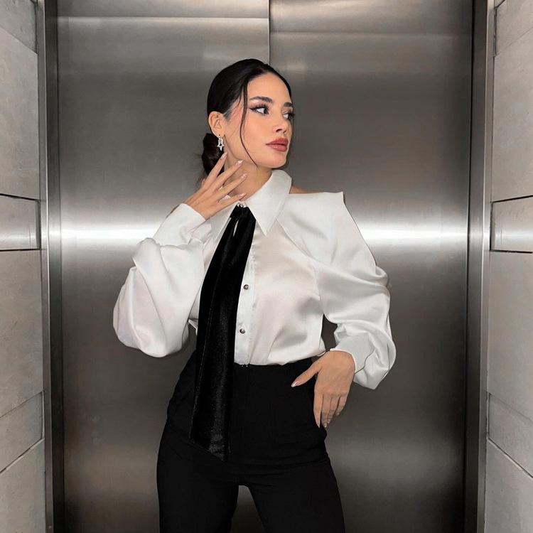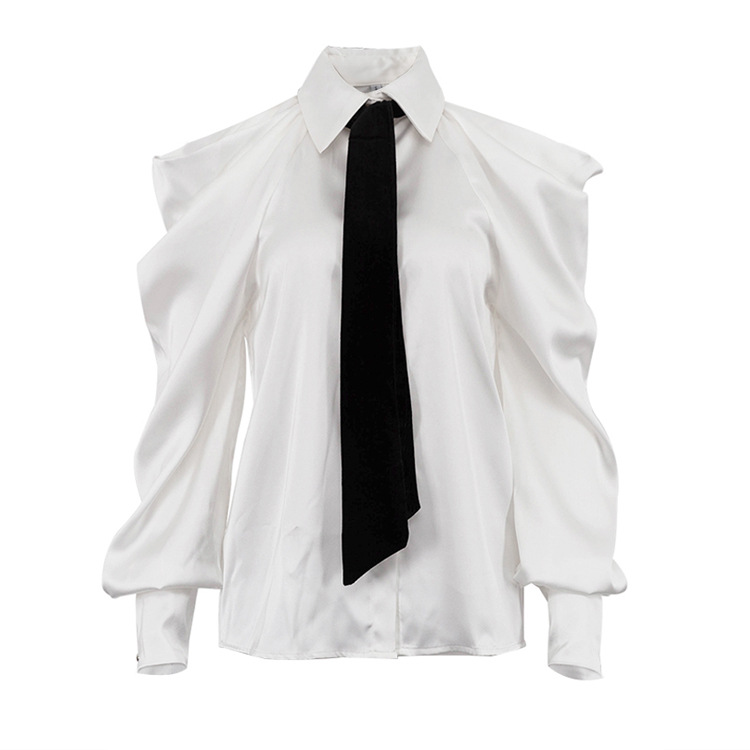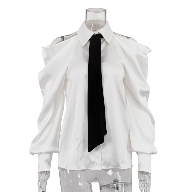 유럽과 미국의 패션 셔츠 하이 엔드 오프 숄더 넥 탑 기질 통근 긴팔 옷깃 셔츠 여성용 넥타이스토어 가기