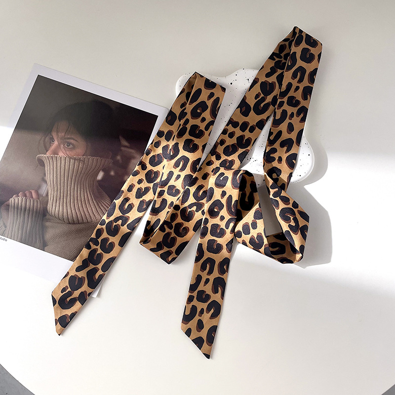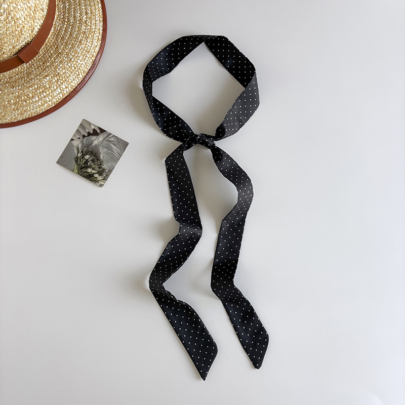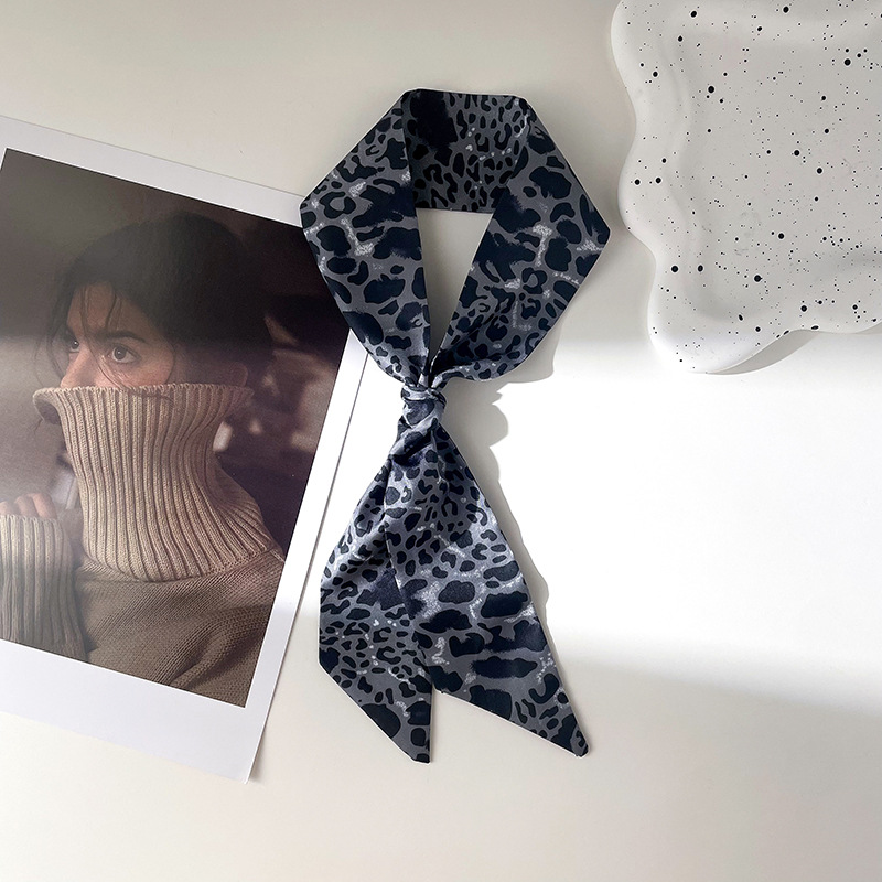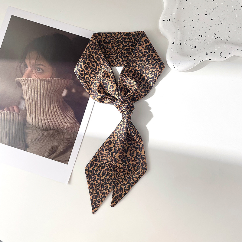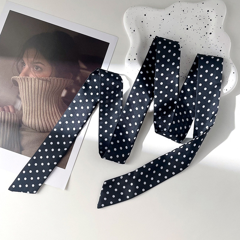 Ins 스타일 의류 액세서리 복고풍 검은 폴카 도트 섹시한 레오파드 실크 스카프 긴 스카프 세련된 외국 스타일 넥 스카프