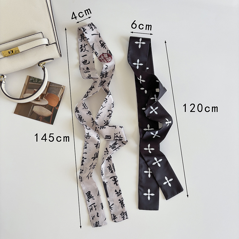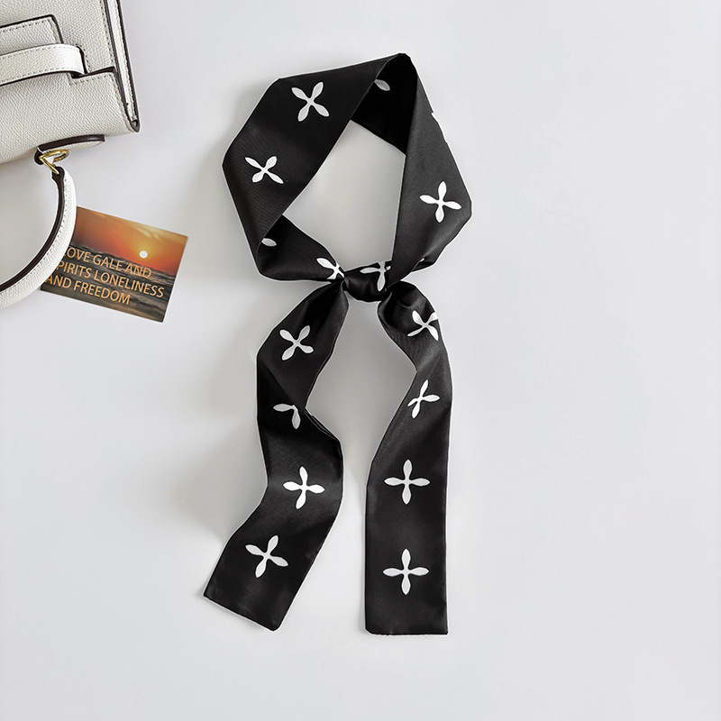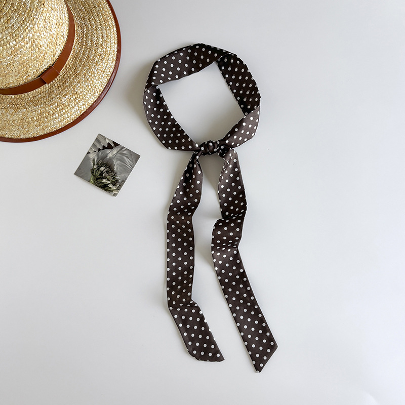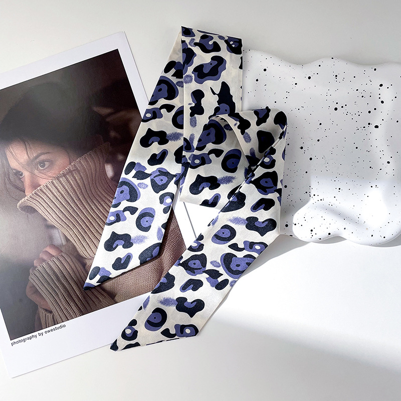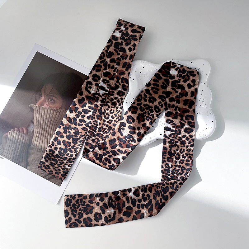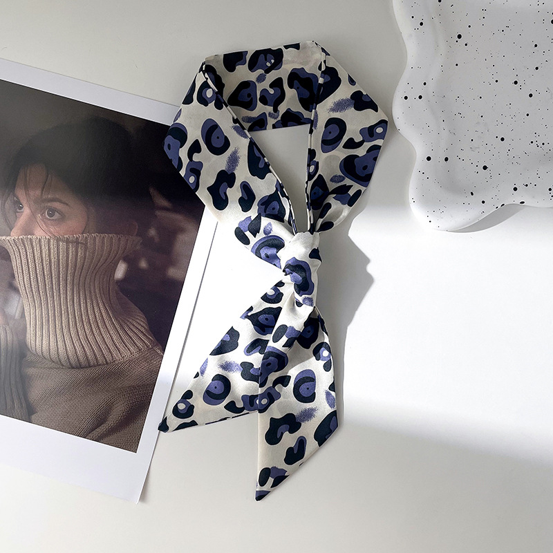 Ins 스타일 의류 액세서리 복고풍 검은 폴카 도트 섹시한 레오파드 실크 스카프 긴 스카프 세련된 외국 스타일 넥 스카프