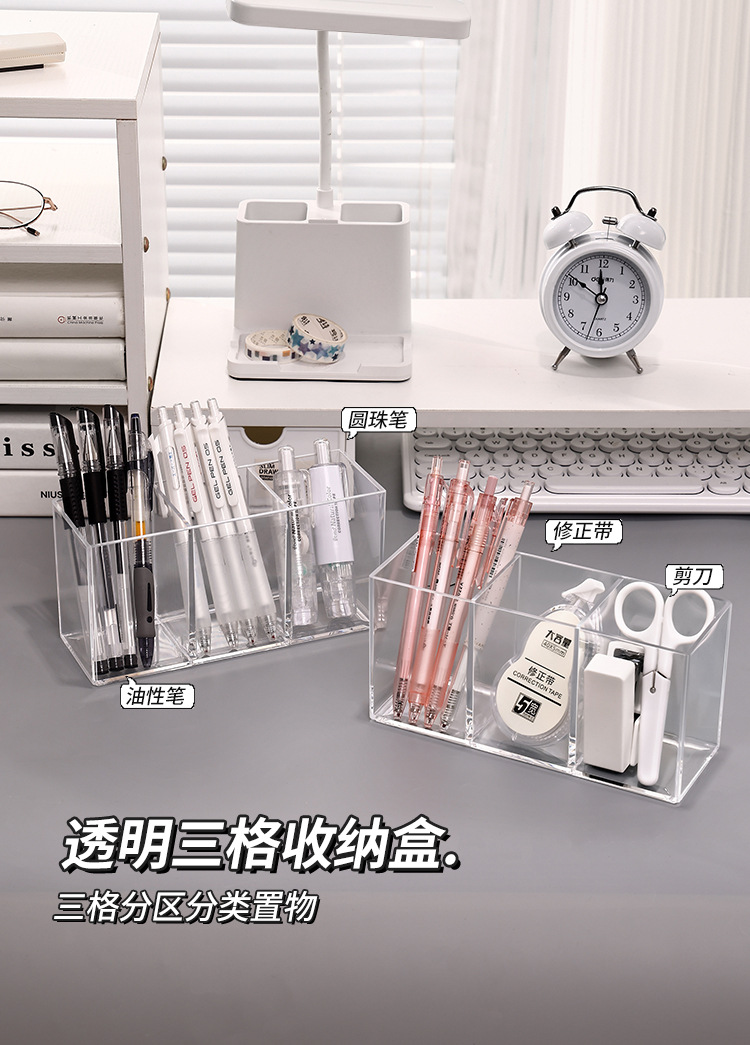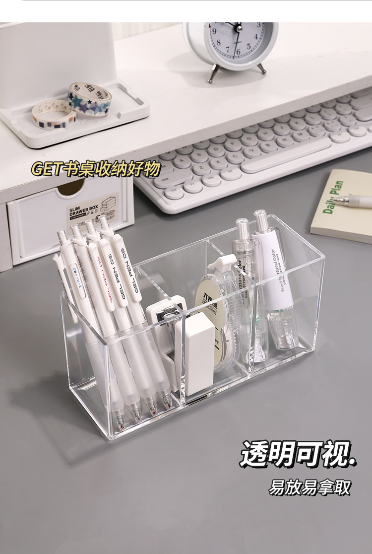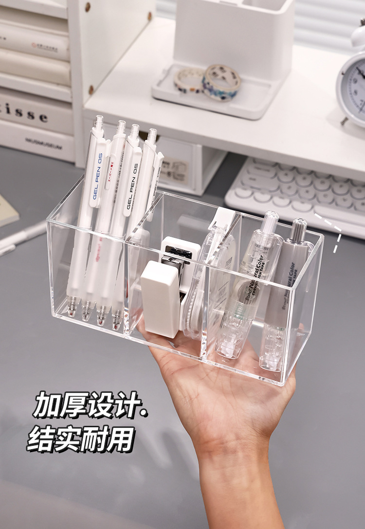 [국경 폭발] 투명 아크릴 펜 홀더 간단한 문구 학생 데스크탑 마무리 메이크업 브러시 버킷 저장 상자스토어 가기