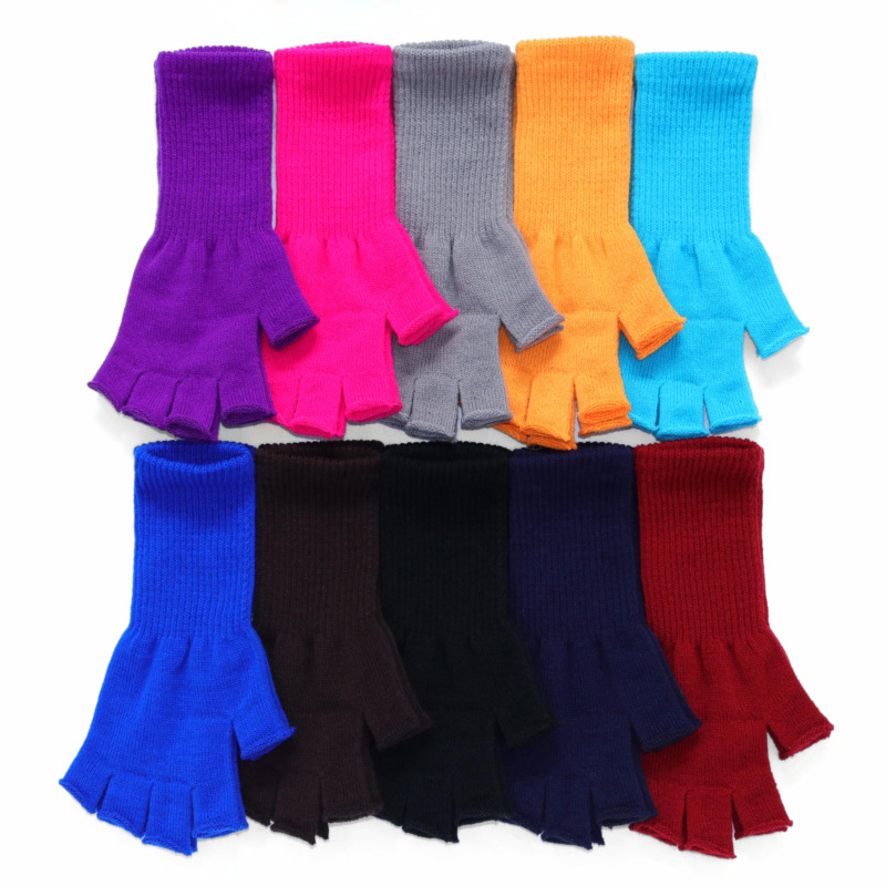 남성과 여성을 위한 국경 간 인기 가을 겨울 니트 긴 반 손가락 장갑 단색 간단한 팔뚝 손가락 따뜻한 장갑