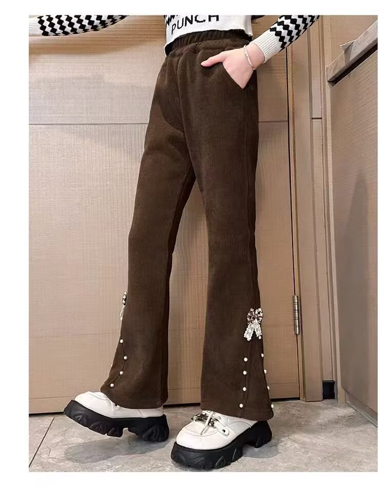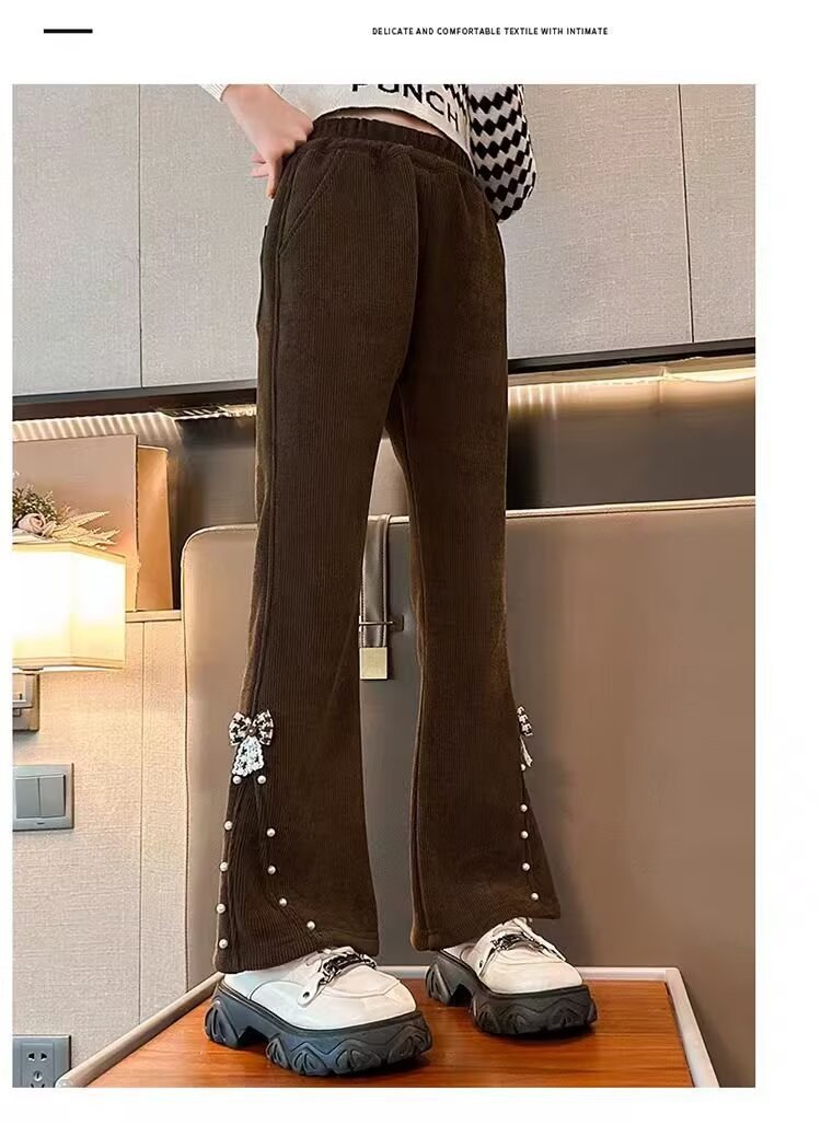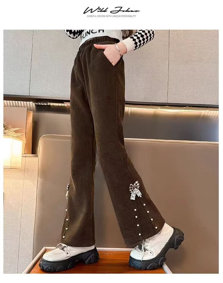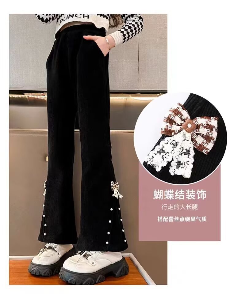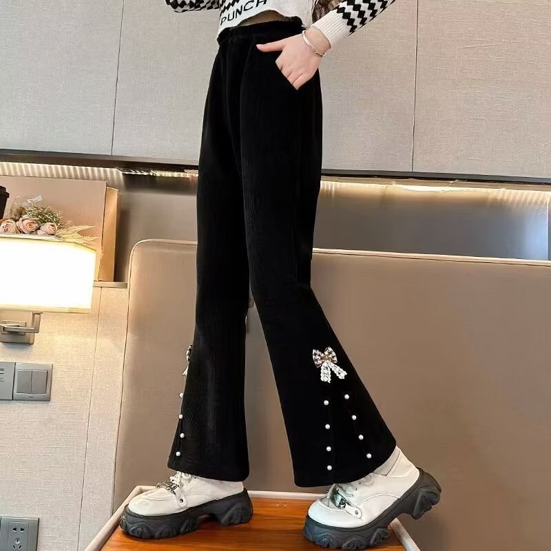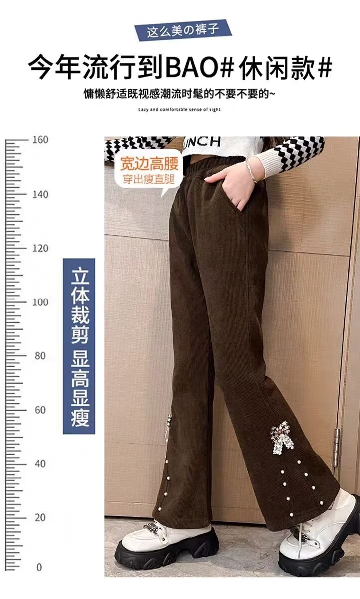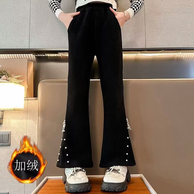 여자 꽃 바지는 기모 아우터 착용 2024 새로운 가을과 겨울 큰 아이들의 세련된 유행 캐주얼 바지 어린이 겨울 착용