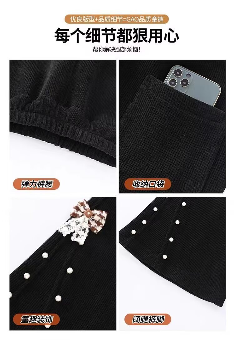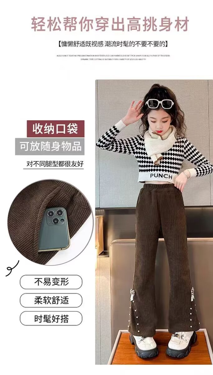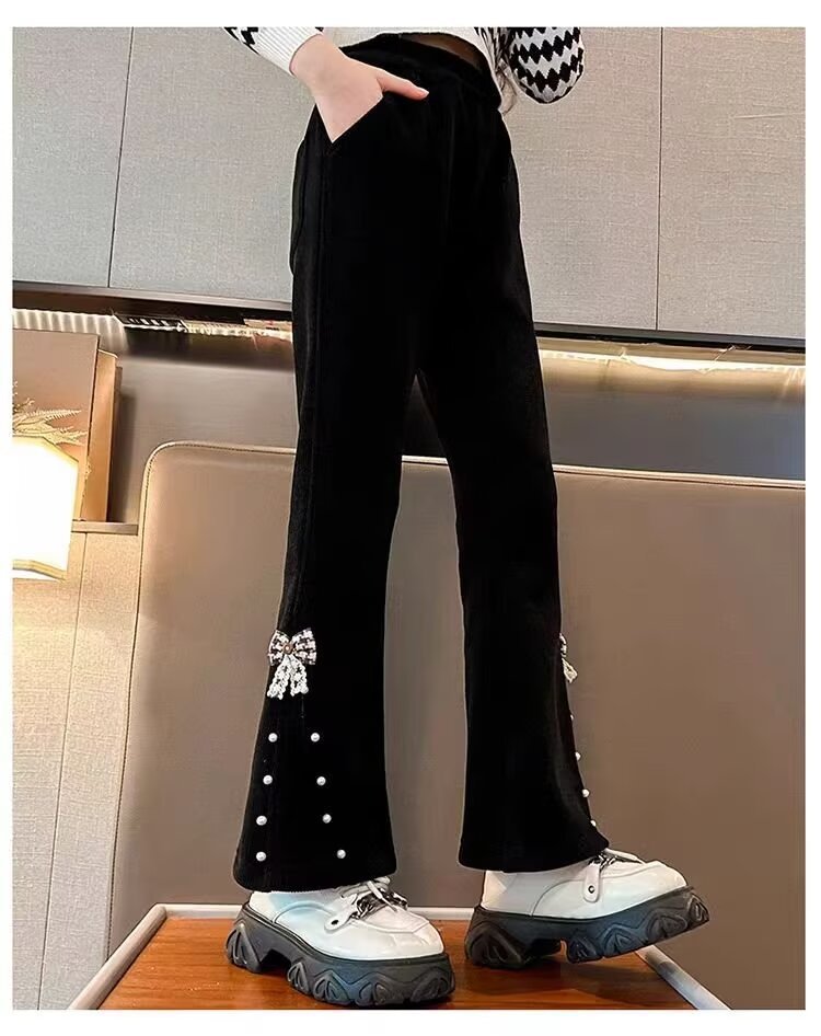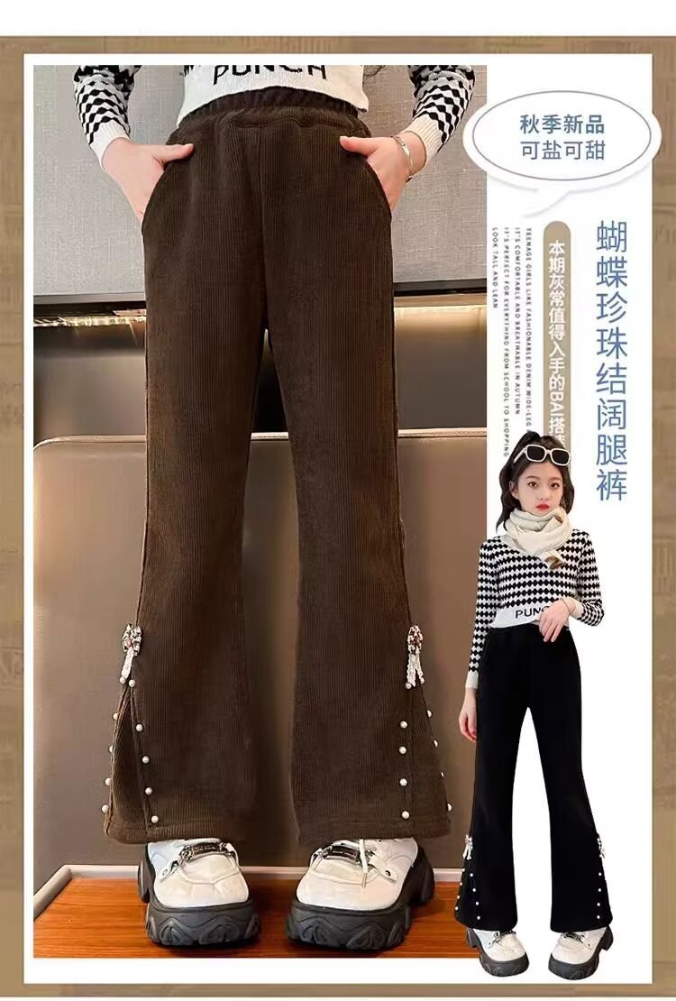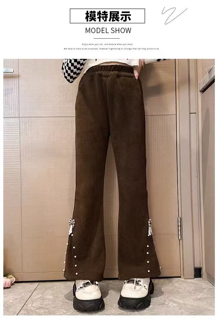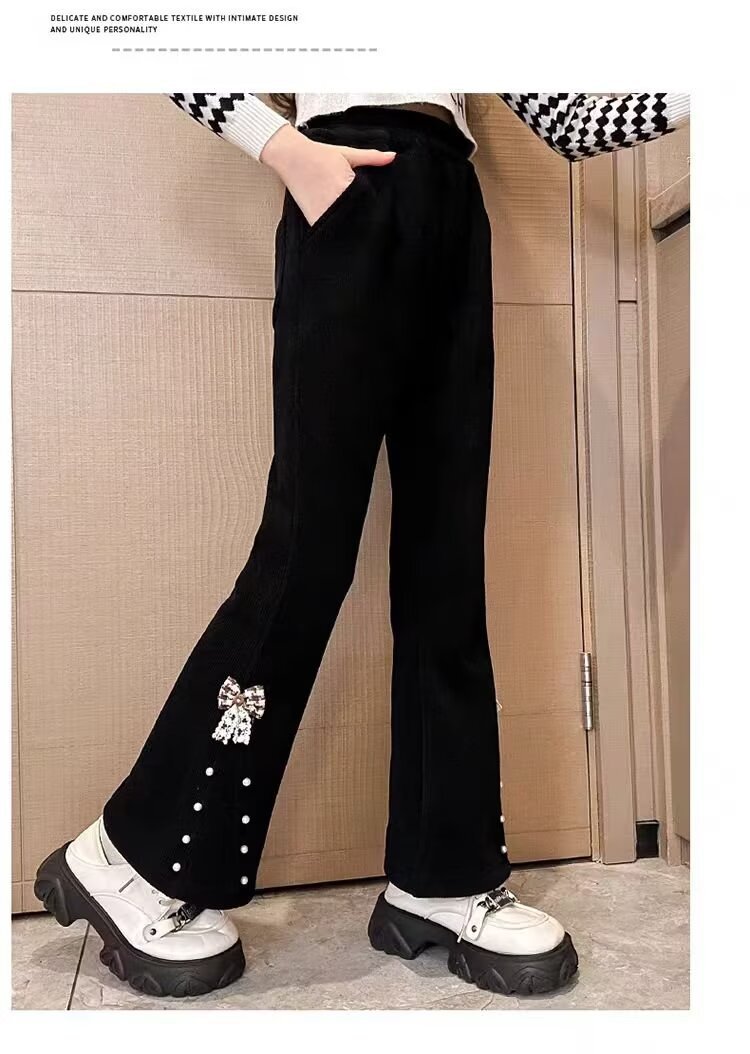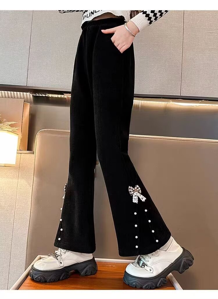 여자 꽃 바지는 기모 아우터 착용 2024 새로운 가을과 겨울 큰 아이들의 세련된 유행 캐주얼 바지 어린이 겨울 착용