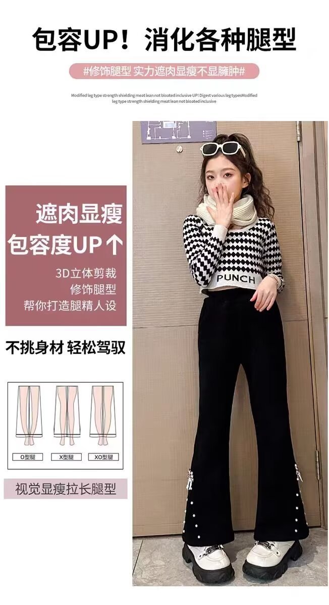 여자 꽃 바지는 기모 아우터 착용 2024 새로운 가을과 겨울 큰 아이들의 세련된 유행 캐주얼 바지 어린이 겨울 착용스토어 가기