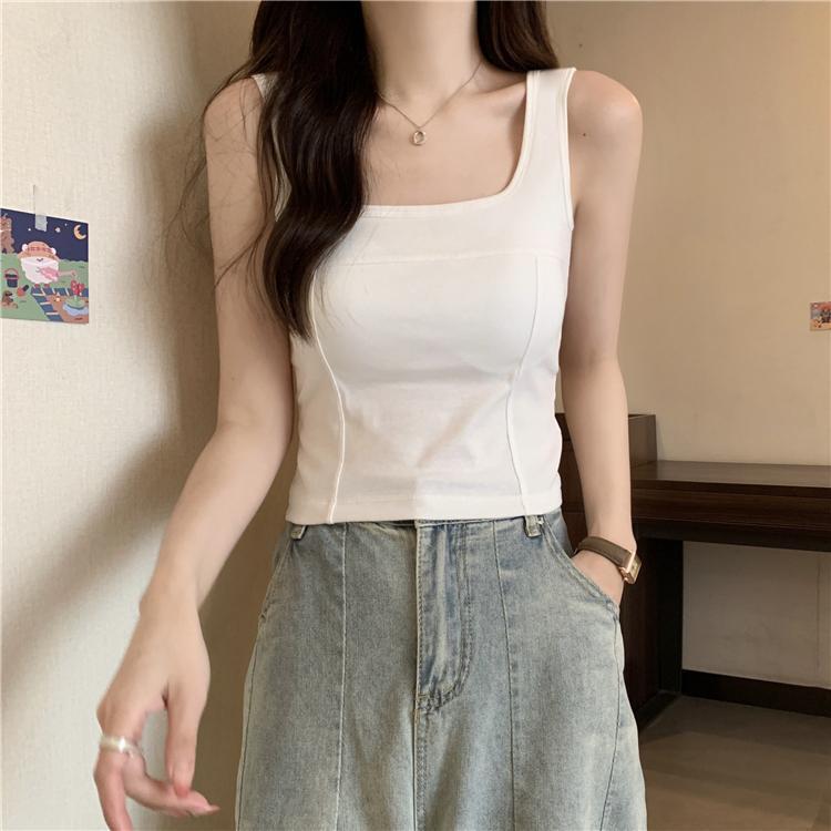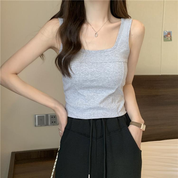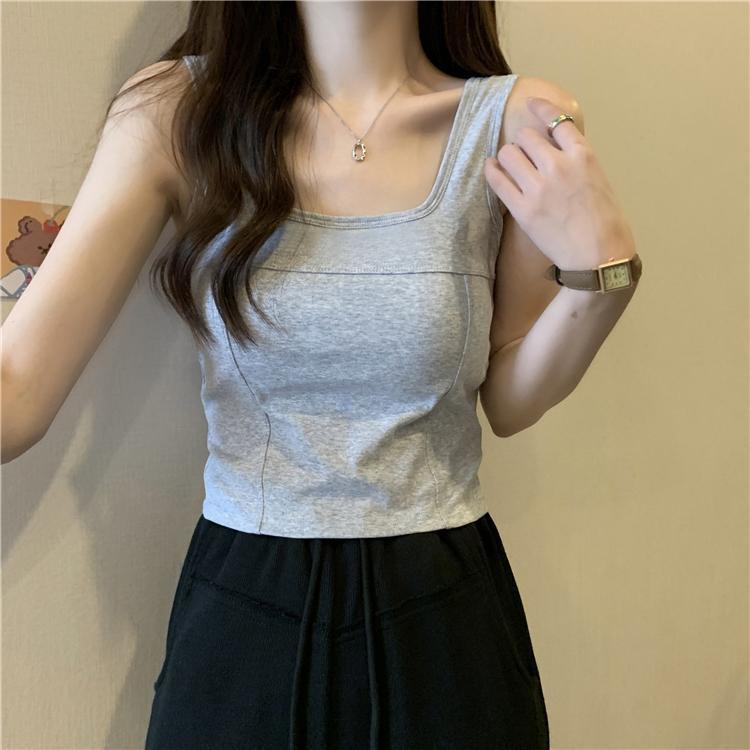 한국식 올매치 카미솔 여자 이너 스위트 스파이스 걸 착용 솔리드 컬러 아우터 착용 민소매 베이스 탑 여성용 가슴 패드스토어 가기