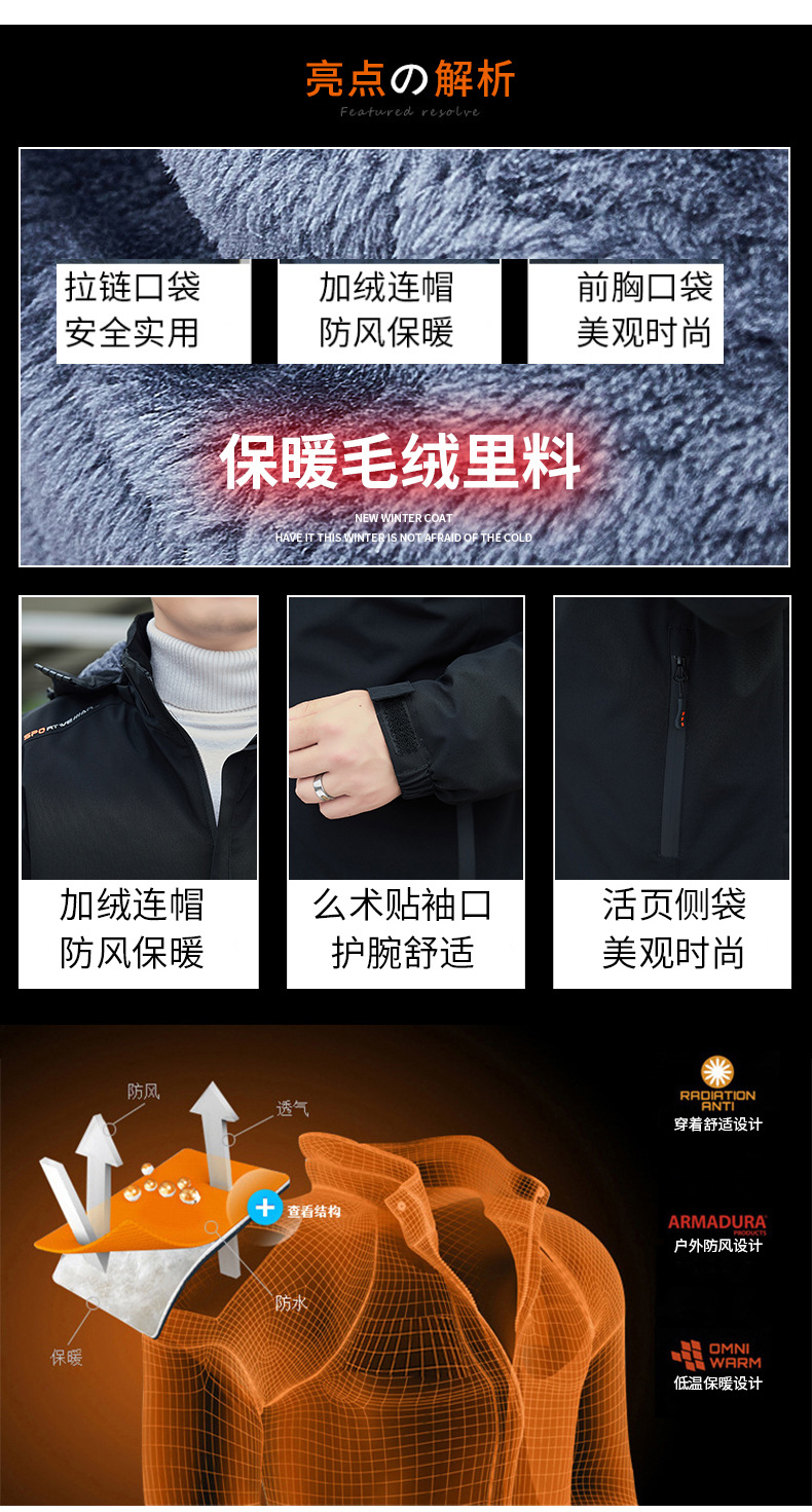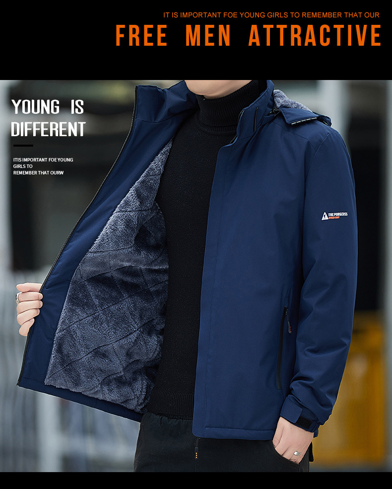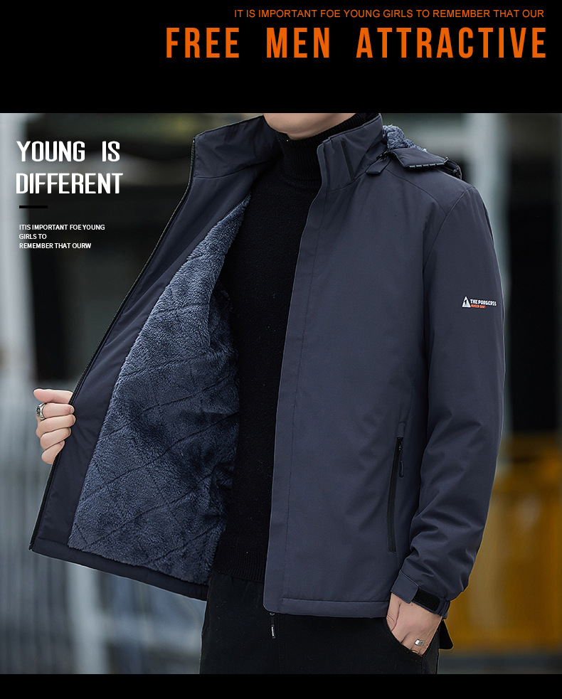 夹克男秋冬中青年加绒男装休闲保暖冲锋衣爸爸装外套三防男士棉衣스토어 가기