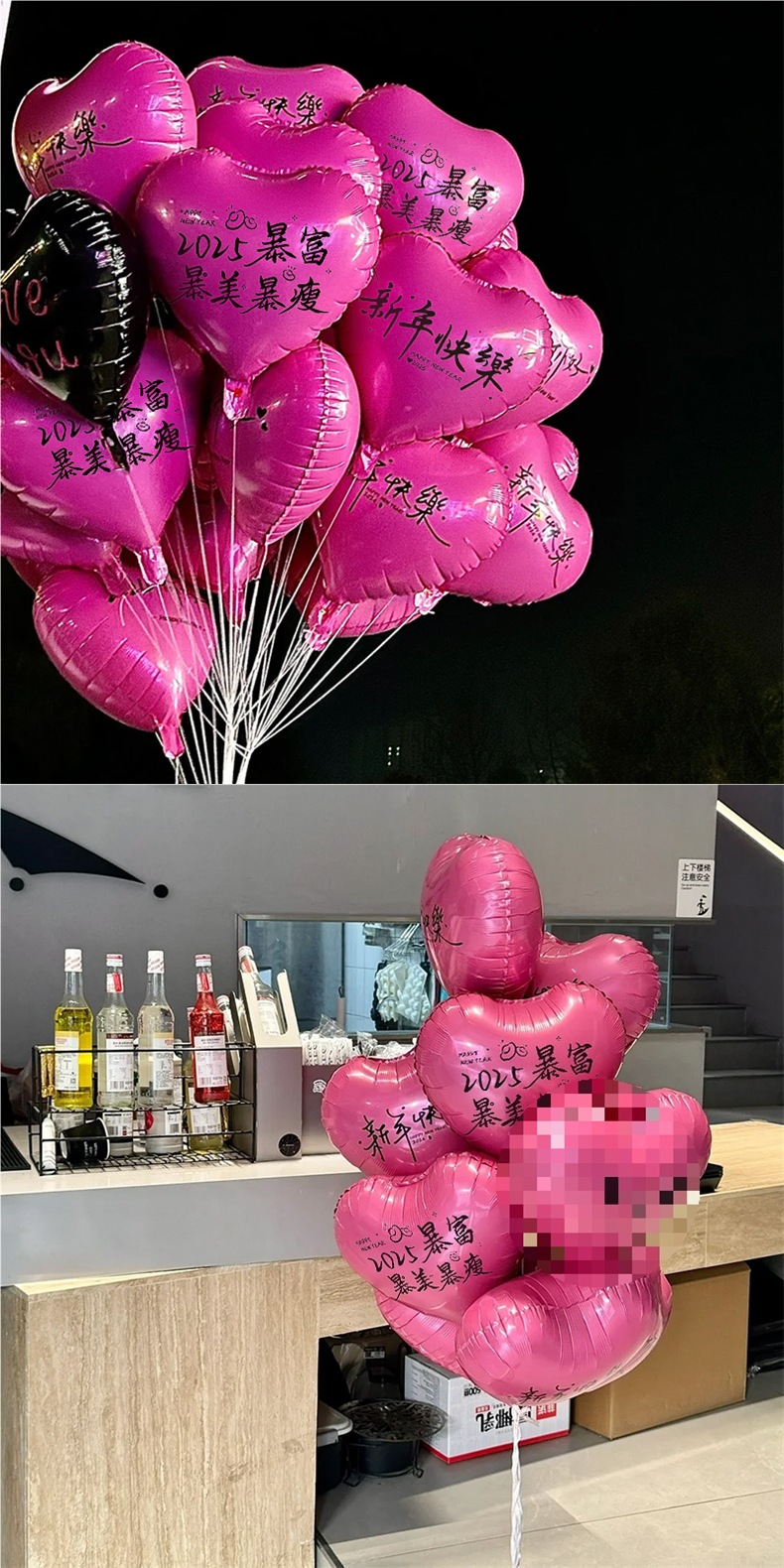 • 새해 복 많이 받으세요 +2025, 리치, 아름답고 얇은 [40개, 무료 펌프] 양면 인쇄 사랑 휴대용 막대 풍선