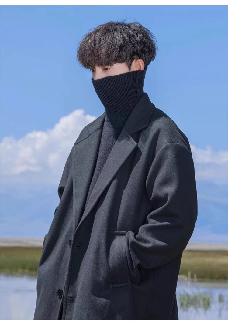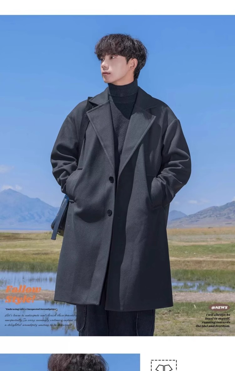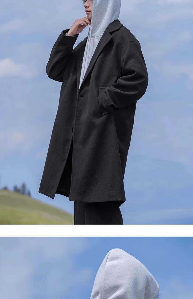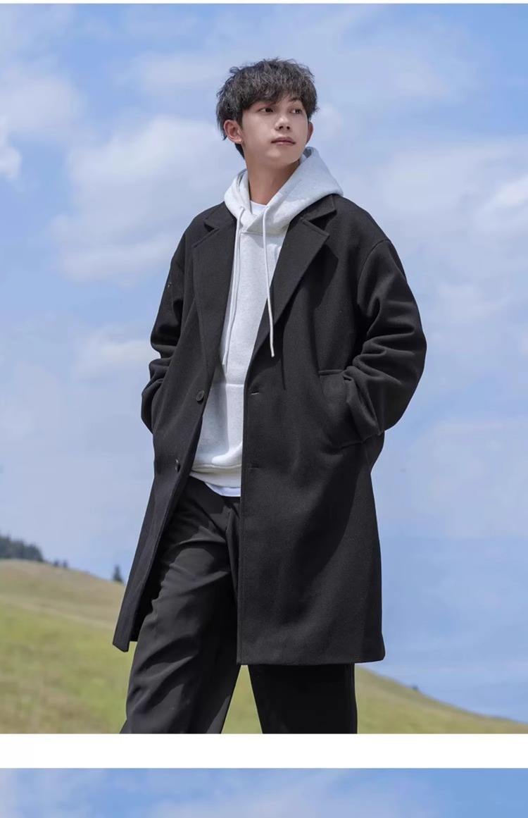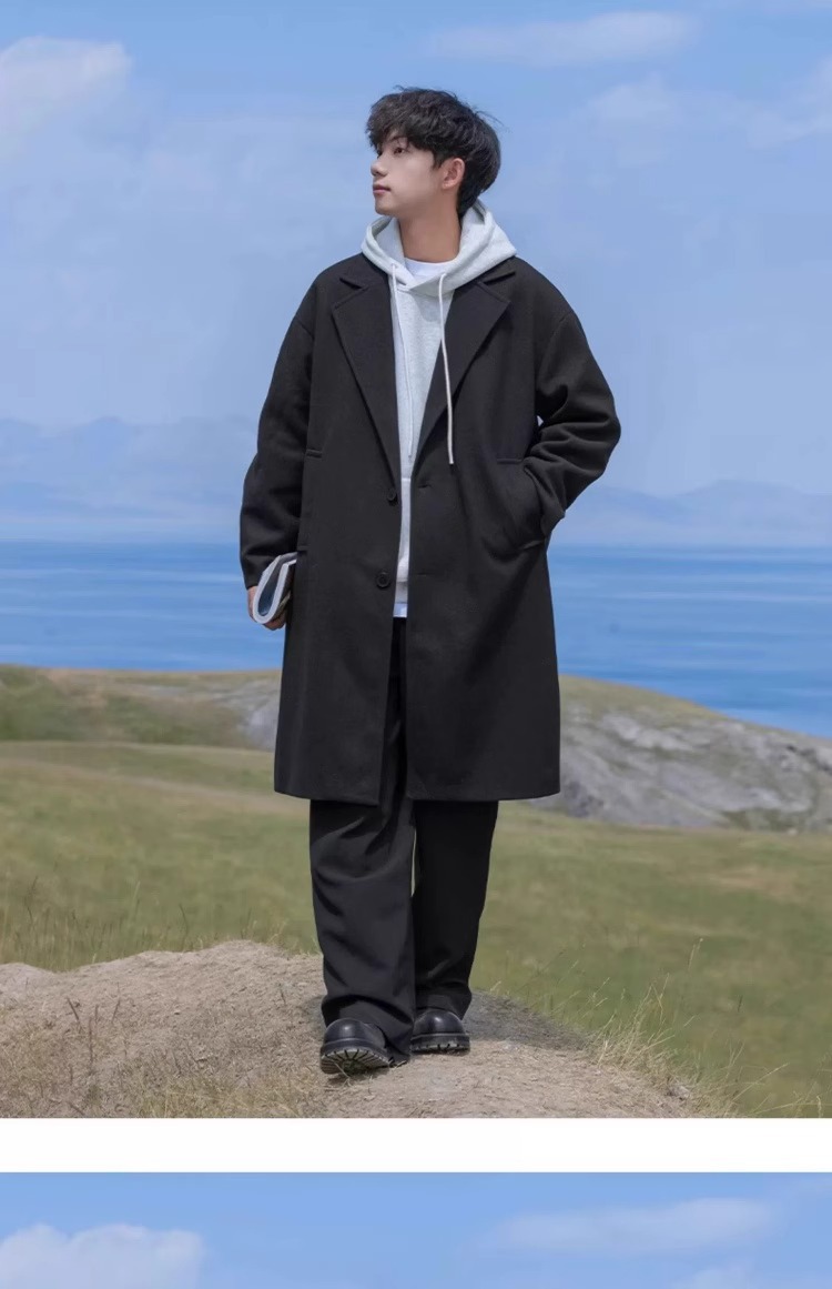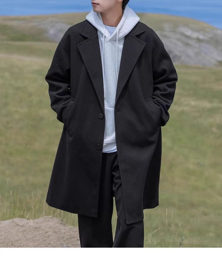 카멜 HJCAMEL 블랙 중간 길이의 모직 코트 남자 봄 가을과 겨울 하이 엔드 코튼 코트 울 코트 코트스토어 가기