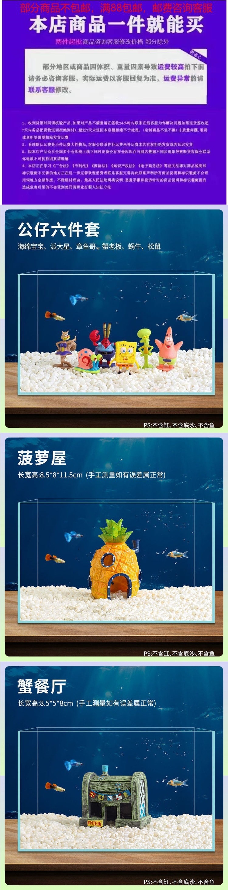 물고기 탱크 파인애플 하우스 조경 장식 수족관 만화 인형 물고기 탱크 작은 가정용 스폰지 밥 탈출 집