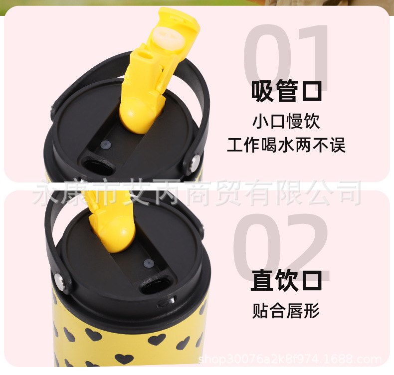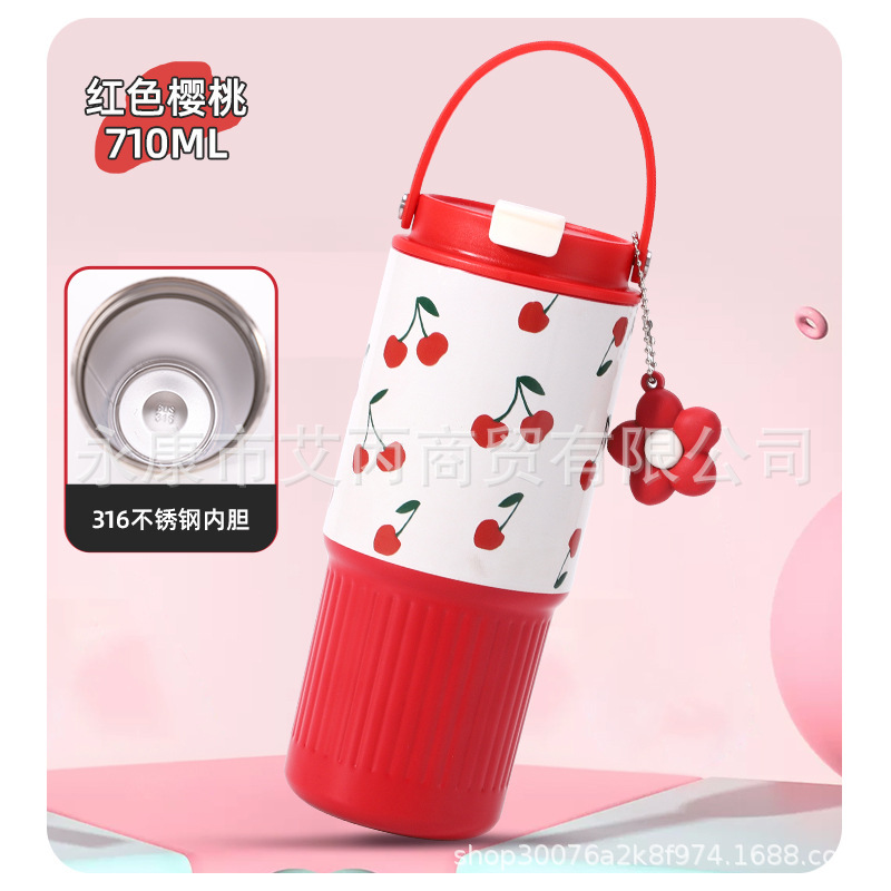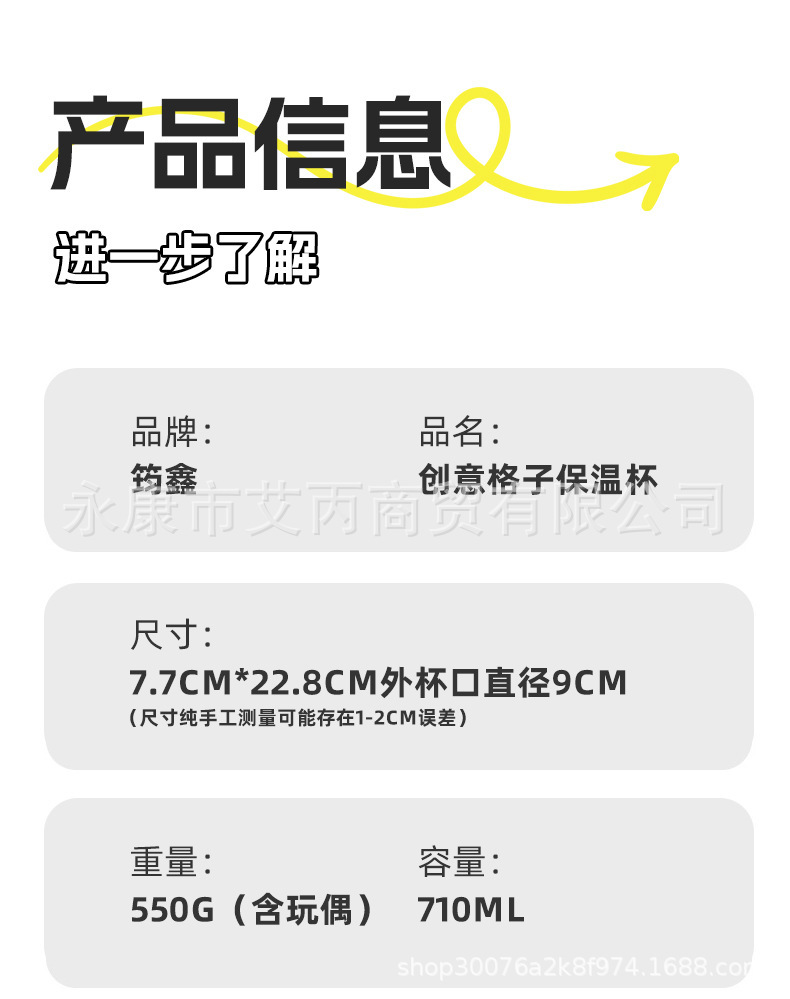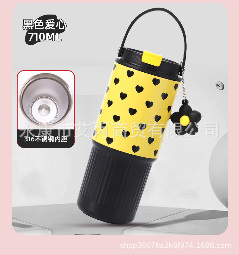 새로운 304 스테인레스 스틸 보온병 컵 독창적 인 격자 무늬 대형 아이스 컵 핸들 밀짚 자동차 컵 도매