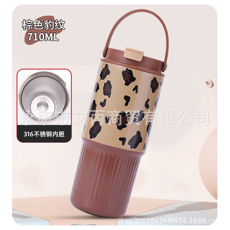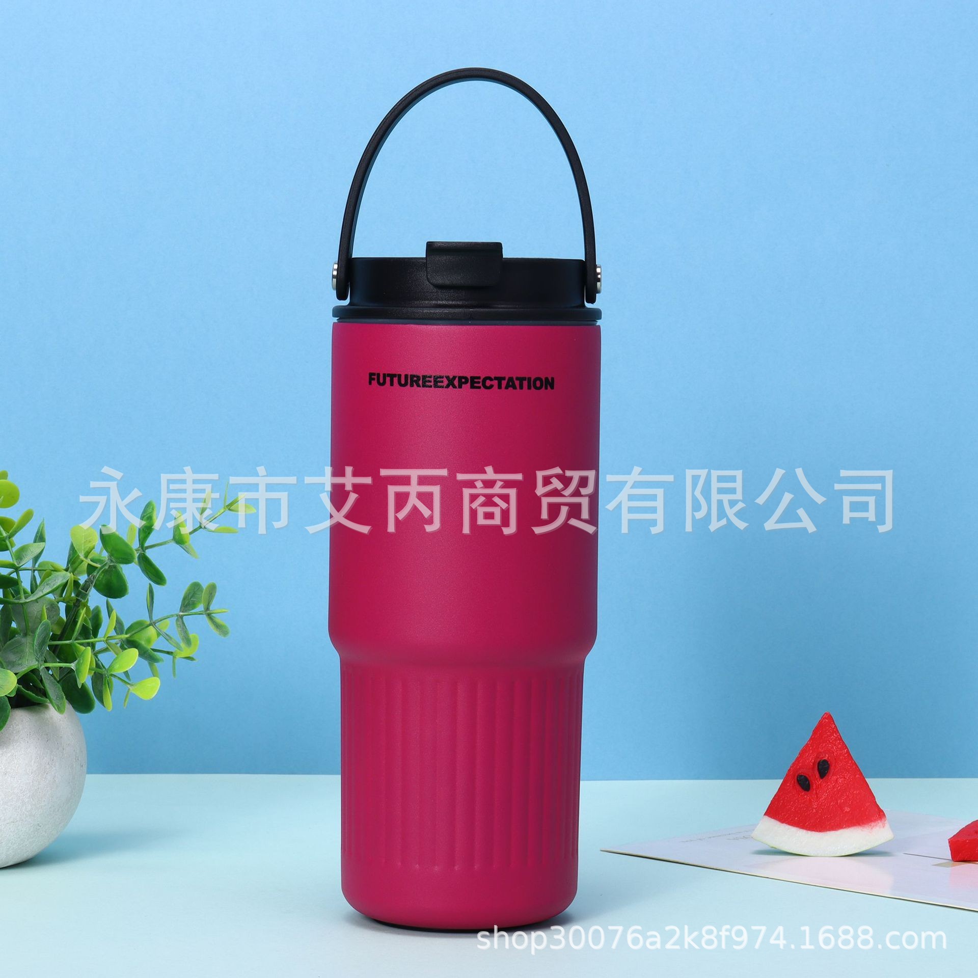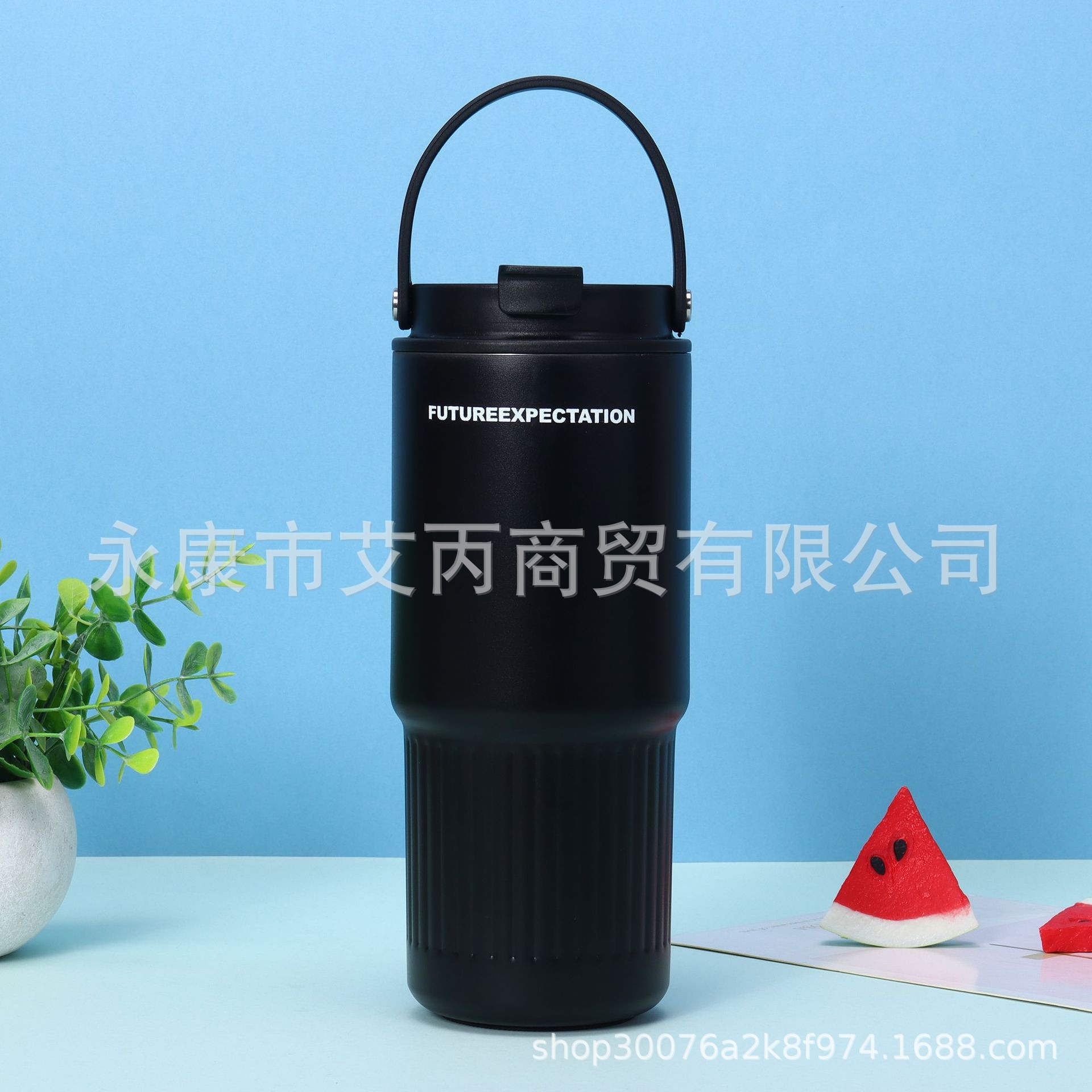 새로운 304 스테인레스 스틸 보온병 컵 독창적 인 격자 무늬 대형 아이스 컵 핸들 밀짚 자동차 컵 도매스토어 가기