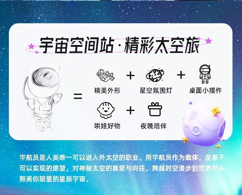 우주 비행사 프로젝션 분위기 빛 우주 비행사 꿈 성운 고급 센스 선물 침실 장식품 은하수 스타 라이트