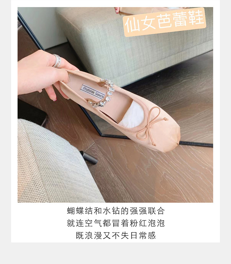 라인 스톤 프렌치 활 라운드 발가락 발레 캐주얼 올 매치 메리 제인 신발 싱글 레이어 슈즈와 재고 우아한 통근스토어 가기