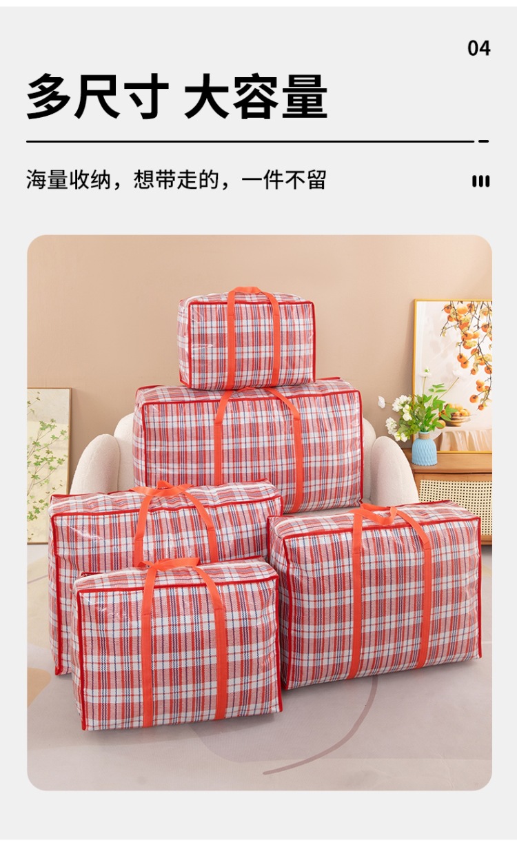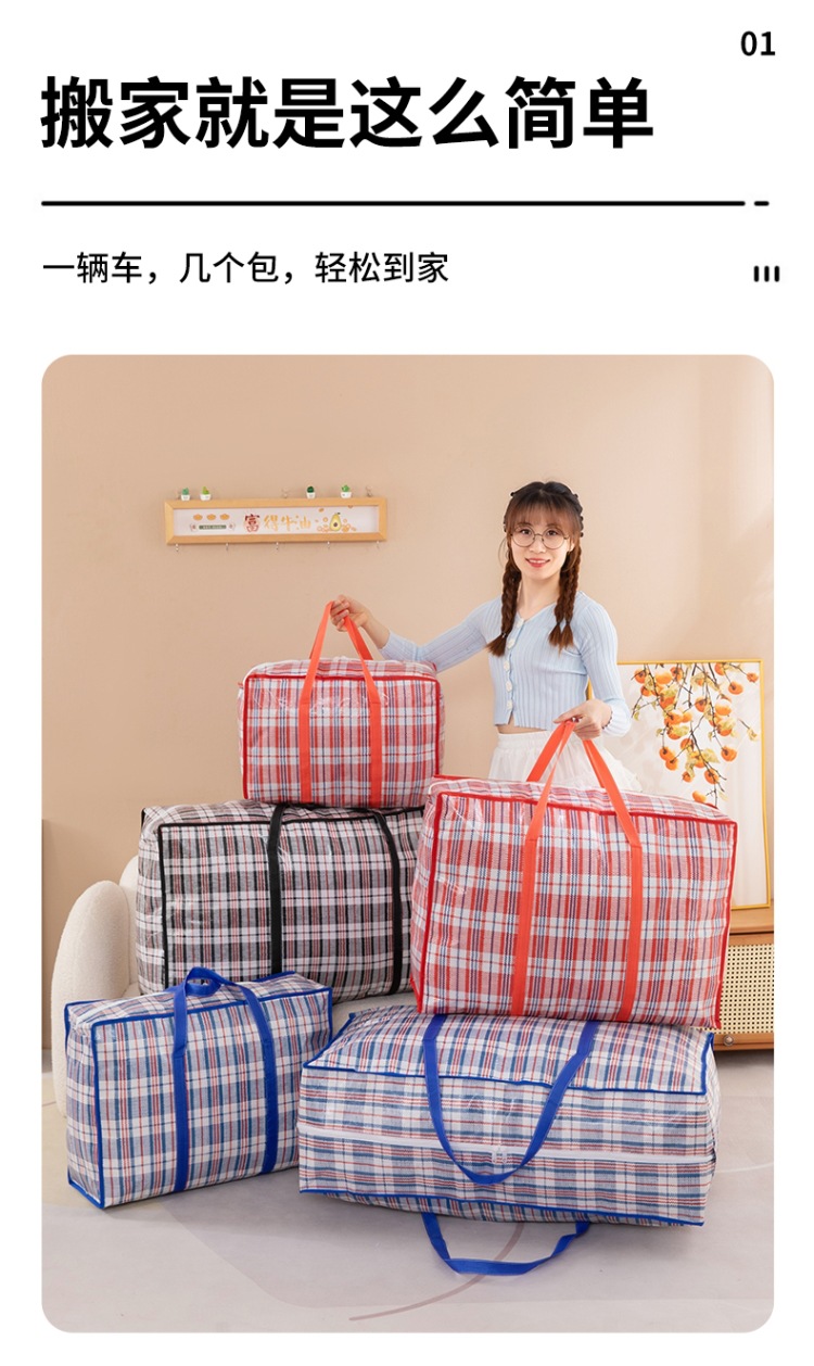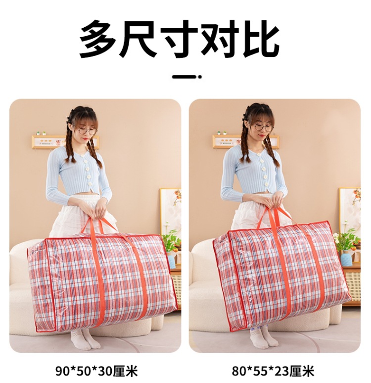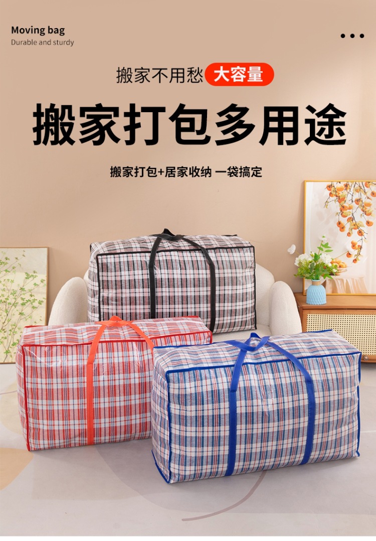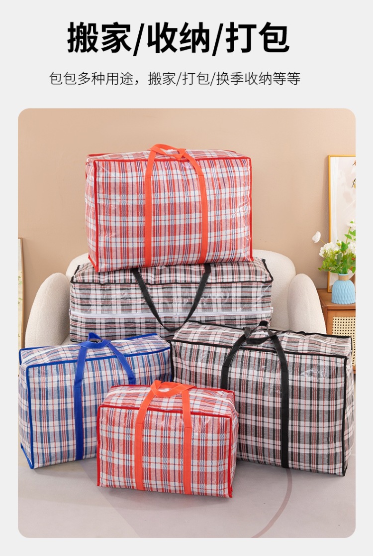 두꺼운 이사 포장 가방 격자무늬 손잡이 달린 짠 가방 수하물 가방 초대형 용량 의류 이불 보관 가방 도매스토어 가기
