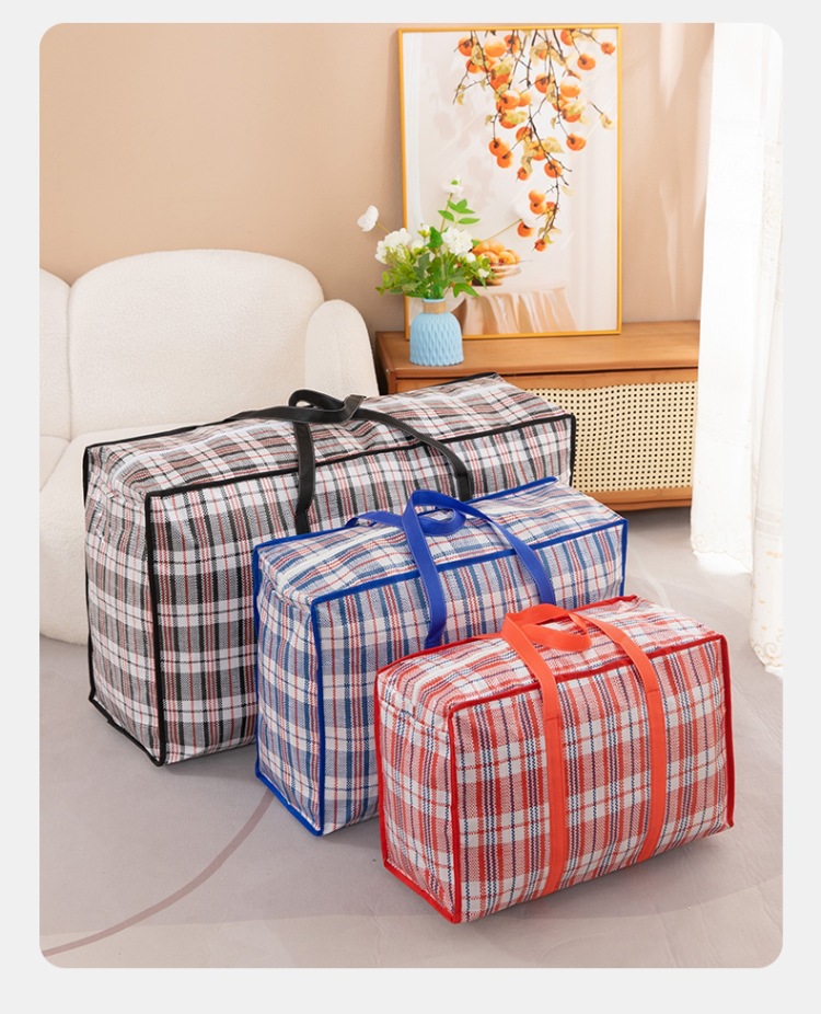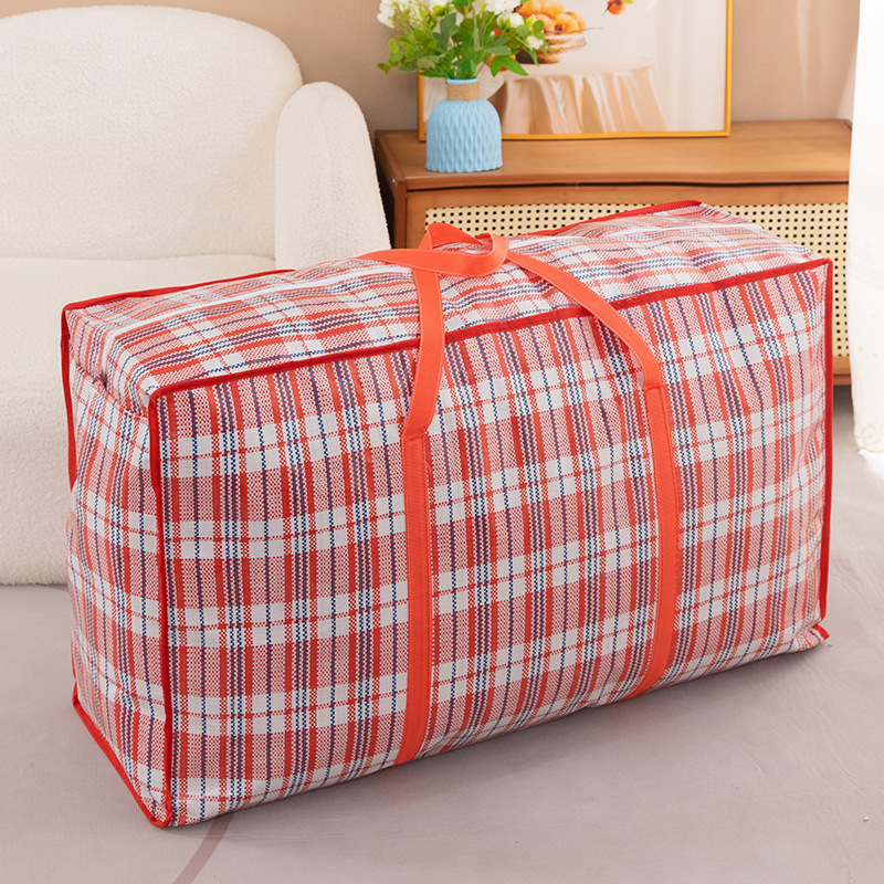 두꺼운 이사 포장 가방 격자무늬 손잡이 달린 짠 가방 수하물 가방 초대형 용량 의류 이불 보관 가방 도매