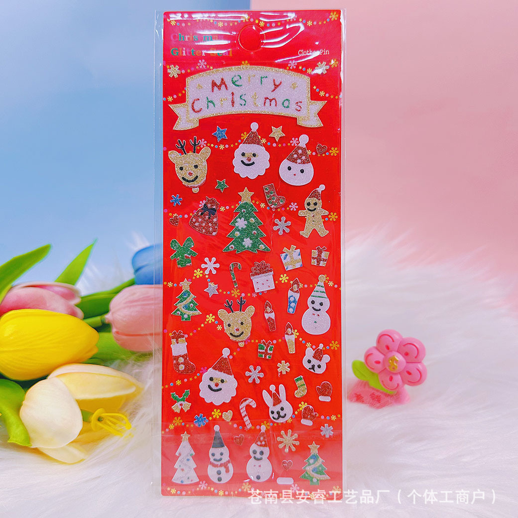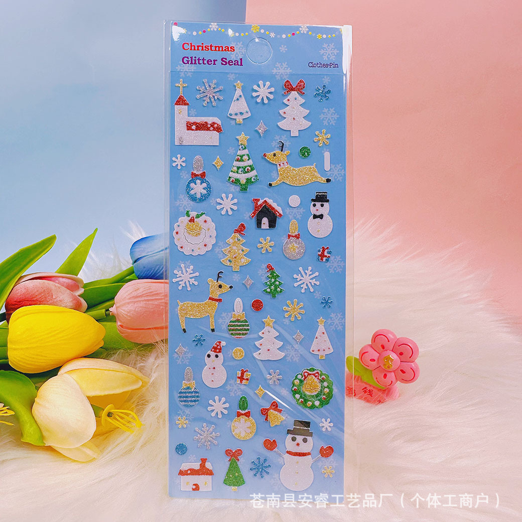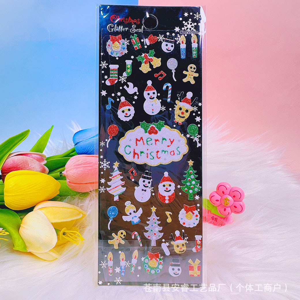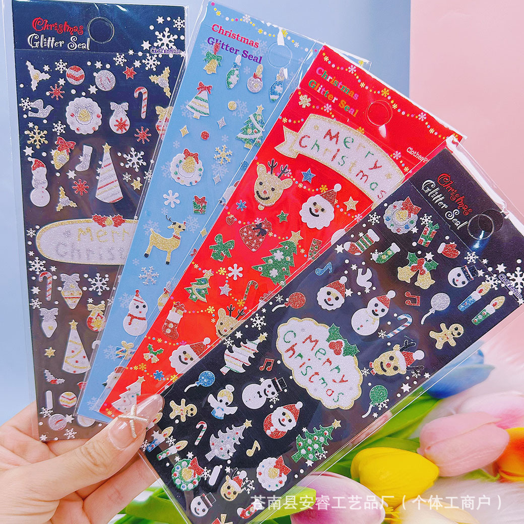 재고 반짝이와 파 파우더 크리스마스 스티커 DIY 장식 스티커 크리스마스 만화 선물 파티 휴일 성격 스티커스토어 가기