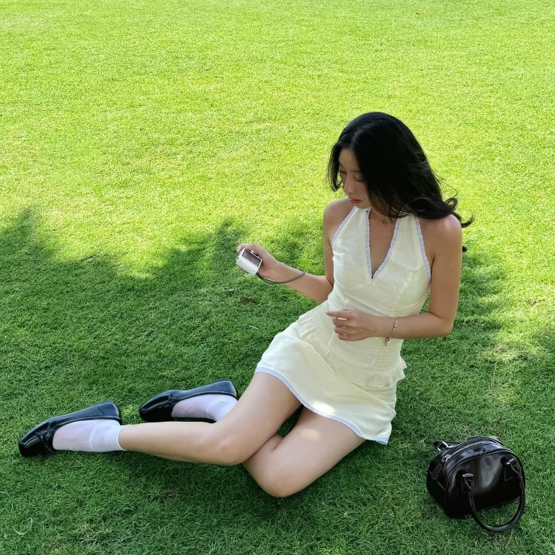 유럽 및 미국 스타일 2024 겨울 새로운 도파민 V-넥 스트랩 홀터 조끼 여성 가방 힙합 스커트 투피스 세트스토어 가기