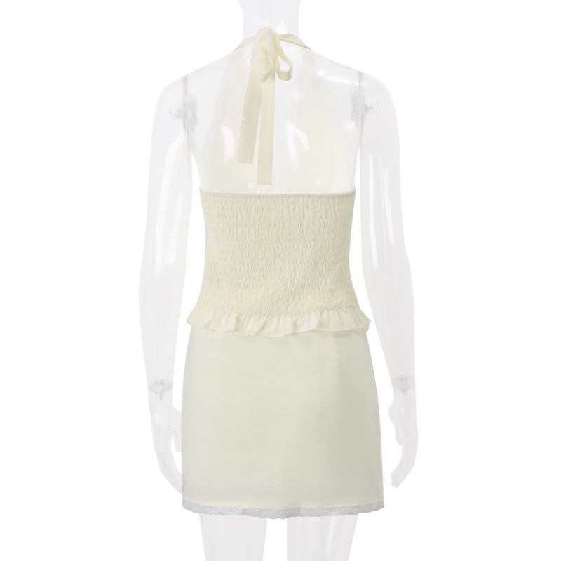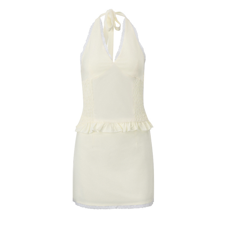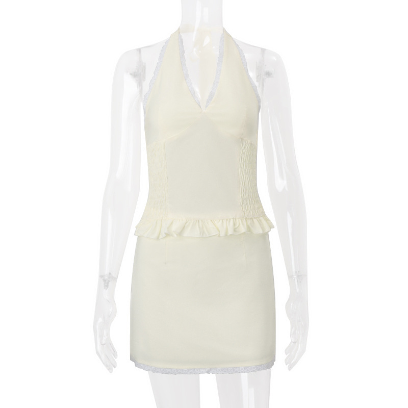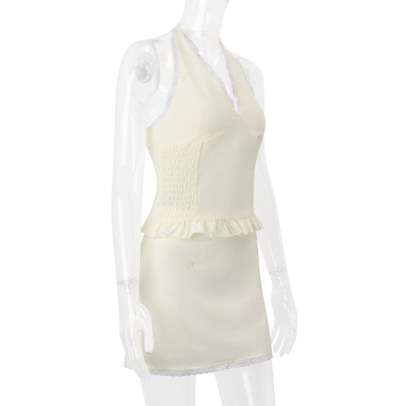 유럽 및 미국 스타일 2024 겨울 새로운 도파민 V-넥 스트랩 홀터 조끼 여성 가방 힙합 스커트 투피스 세트