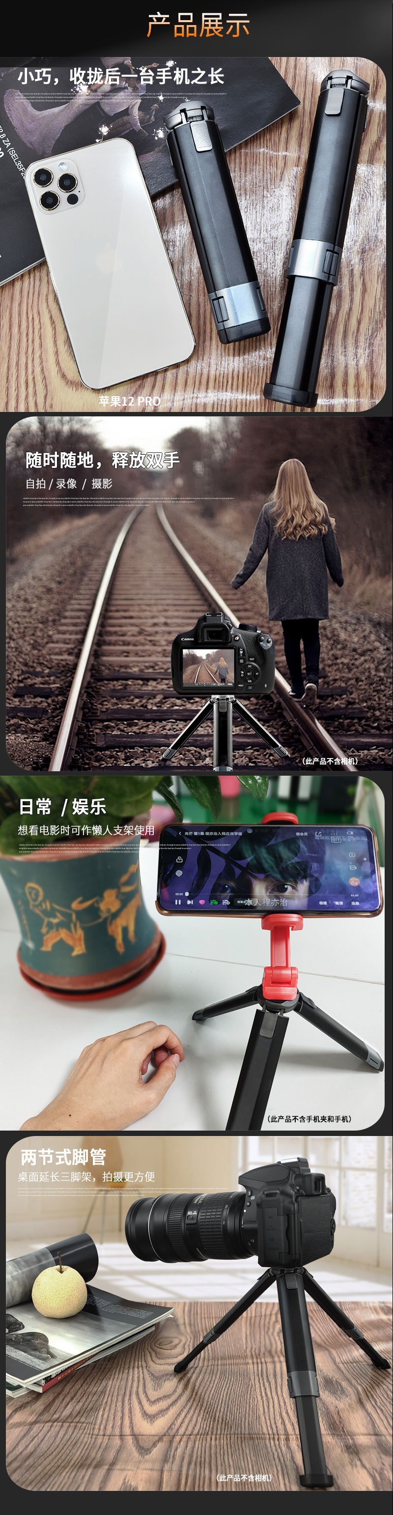 금속 2 기어 조정 데스크탑 라이브 휴대 전화 카메라 게으른 야외 핸드 헬드 비디오 셀카 고정 삼각대