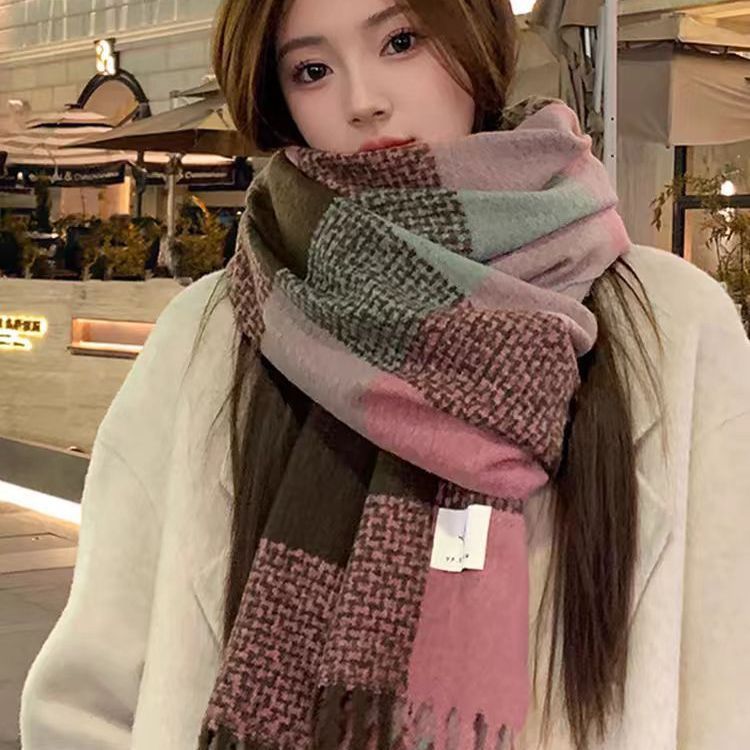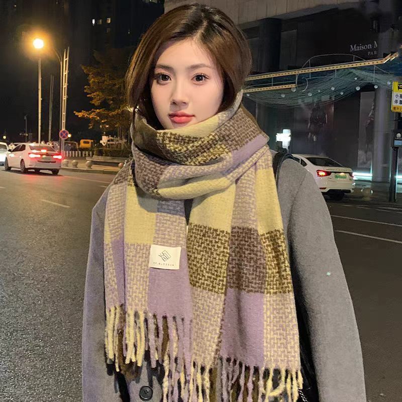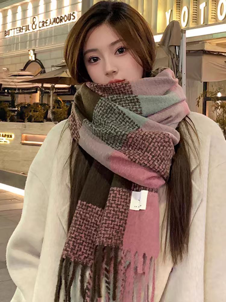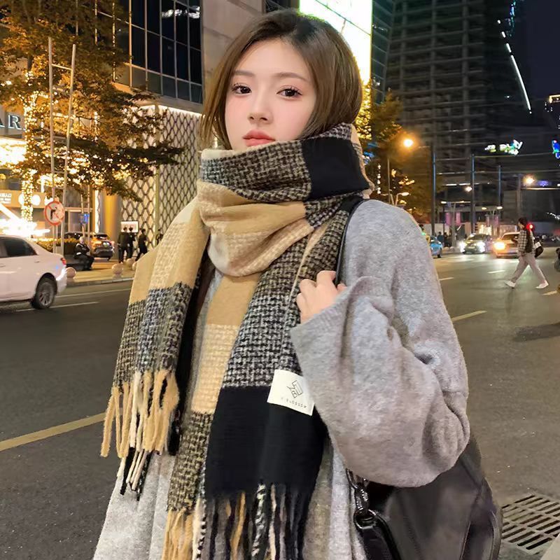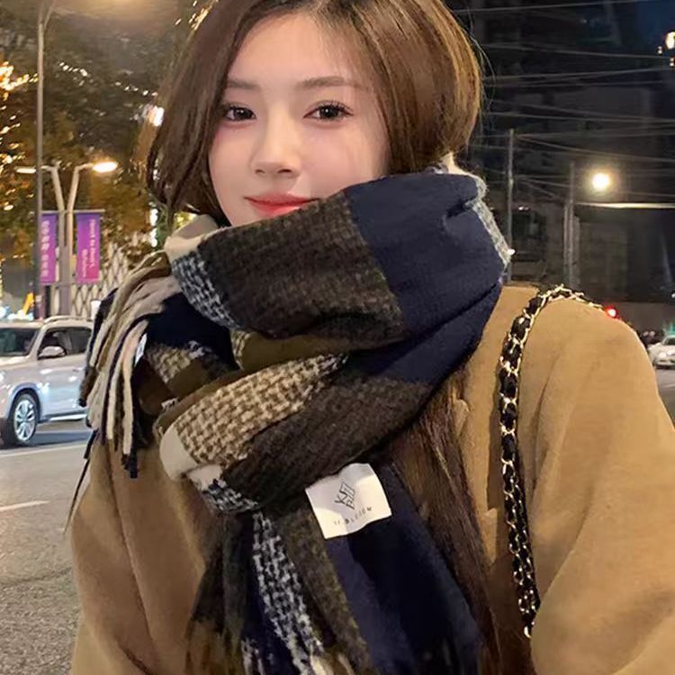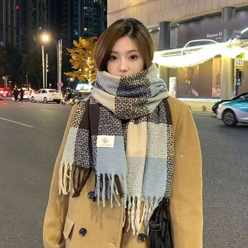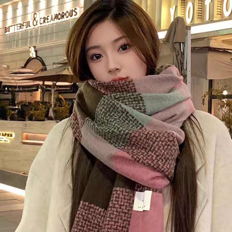 분위기 색상 일치하는 체크 무늬 스카프 소녀 2024 새로운 가을과 겨울 따뜻한 차가운 빈티지 커플 스카프 도매스토어 가기