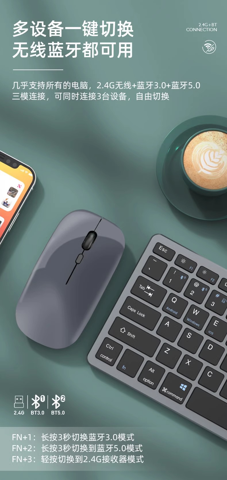 듀얼 모드 블루투스 무선 키보드 및 마우스 세트 노트북 사무실 특수 태블릿 PC 조용한 충전식