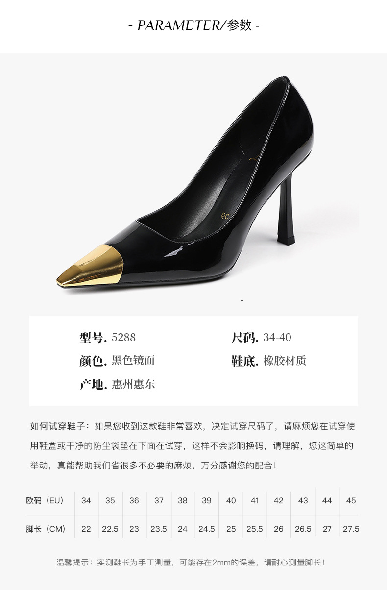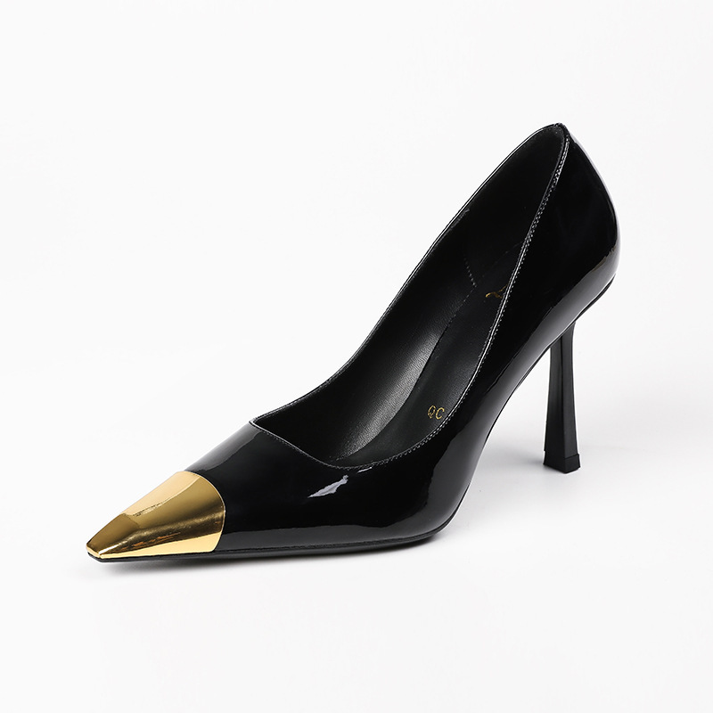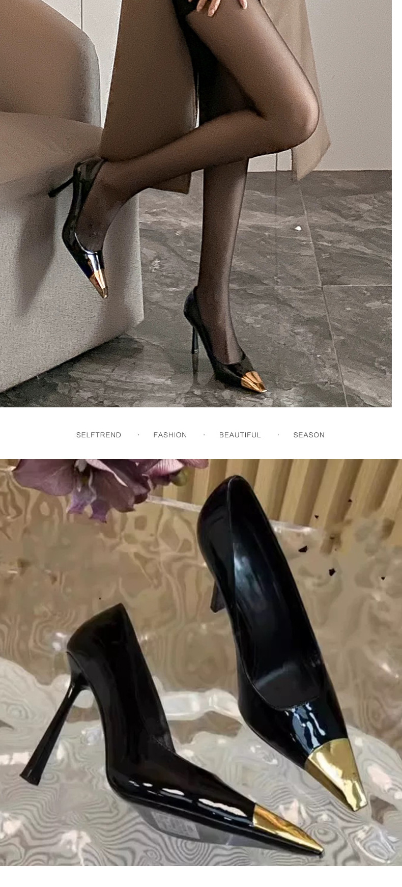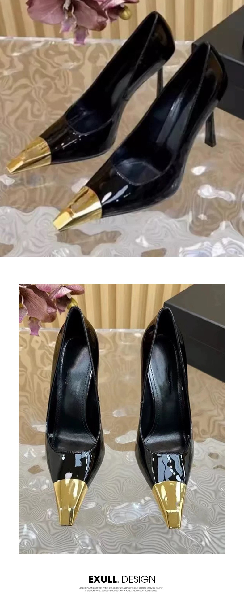 2025 새로운 연예인 거울 특허 가죽 골드 스퀘어 토 얕은 하이힐 포플러 숲 금속 사각 발가락 싱글 레이어 신발스토어 가기