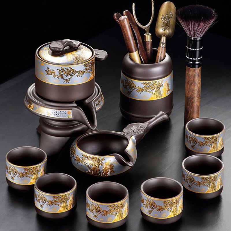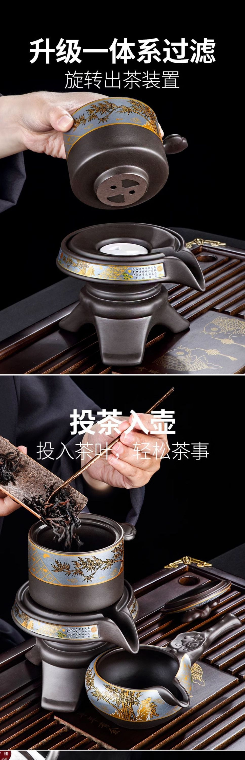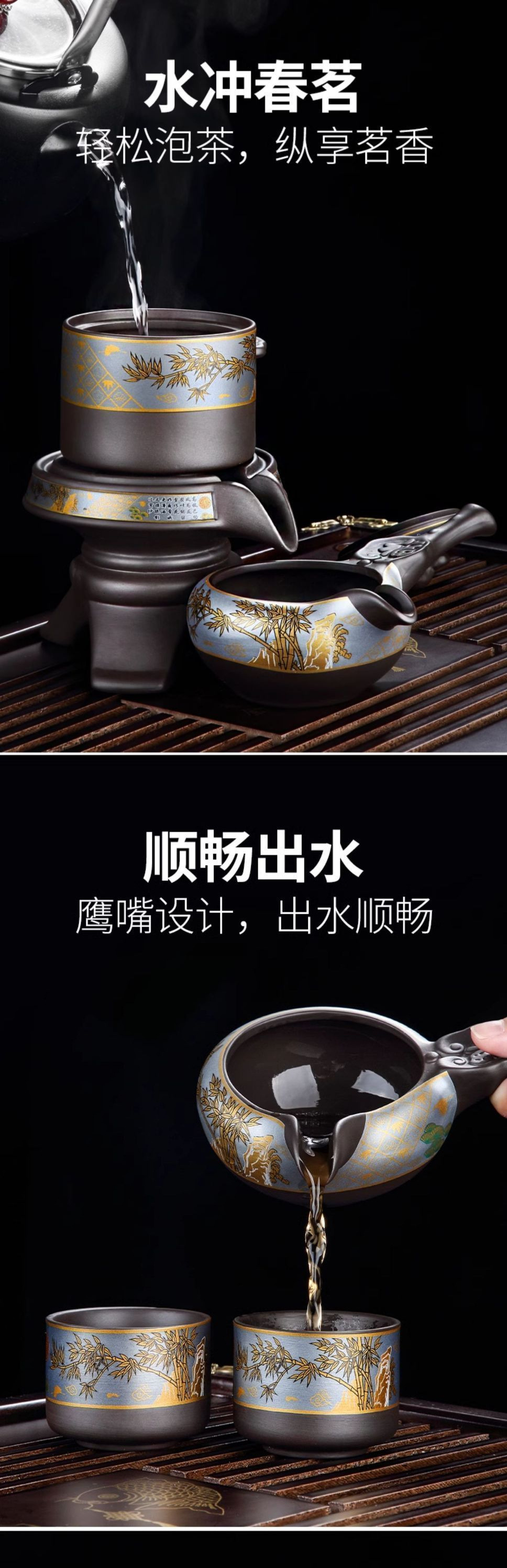 가정용 게으른 남자 로타리 자동 차 메이커 사이버 인기 안티-스케일 돌 연삭 차 세트 세트 대나무 차 트레이 차 테이블 완전한 세트스토어 가기
